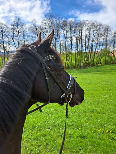 Quickstep is an 8-year-old Hanoverian gelding, approximately 17.5 hands tall, and I have owned him for the past four years. He has been trained up to M** level and has been presented at competitions. He is naturally loading-friendly, well-behaved at the farrier, and rides calmly both alone and in groups in the terrain. He enjoys working over poles and cavaletti. Neither on the ground nor under saddle does he show any undesirable behaviors. Due to medical findings and the increased stress experienced at larger competitions, I no longer wish to compete him at higher levels. I am looking for a good home where someone can enjoy working with him and learn from his qualities. Q is always very motivated, eager to work, and happy with any kind of activity. He is fully in training and requires no special management. A suitable saddle and additional equipment can be purchased if desired. For information about the medical findings and other details, please contact me by phone at +43 676 5398780. Location: near Linz, Upper Austria – trial rides are of course possible.