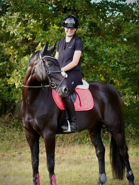 Ein außergewöhnlich eleganter, vollständig schwarzer Hannoveraner Wallach von beeindruckender Ausstrahlung und Qualität. Dieses Sportpferd vereint modernes Exterieur mit hervorragender Leistungsbereitschaft und eignet sich ideal für den gehobenen Dressur- und Springsport. Er verfügt über drei erstklassige Grundgangarten: einen raumgreifenden, taktsicheren Schritt, einen schwungvollen Trab mit viel Elastizität sowie einen kraftvollen, gut ausbalancierten Galopp. In der Dressur überzeugt er durch seine Rittigkeit, feine Anlehnung und hohe Lernbereitschaft, wodurch Lektionen auf fortgeschrittenem Niveau sicher abrufbar sind. Auch im Springen zeigt er großes Talent mit viel Vermögen, schneller Auffassungsgabe, sauberer Technik und der nötigen Vorsicht am Sprung. Sein Charakter ist ebenso hervorzuheben: Der Wallach ist freundlich, ausgeglichen und leistungsbereit, dabei stets motiviert und zuverlässig im täglichen Training wie auch auf dem Turnier. Er ist angenehm im Umgang, verlade- und schmiedefromm sowie unkompliziert im Stall. Gesundheitlich ist dieses Pferd in bestem Zustand. Aktuelle tierärztliche Untersuchungen liegen vollständig vor, einschließlich umfangreicher Röntgenbilder ohne Befund, die seine volle Einsatzfähigkeit im Sport bestätigen. Ein ideales Pferd für ambitionierte Reiter, die einen talentierten, gesunden und vielseitigen Partner für höhere Aufgaben suchen.