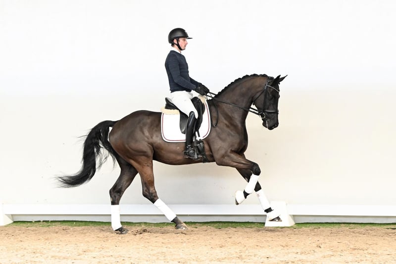 This 6-year-old gelding of ideal stature combines everything one could wish for in a modern dressage horse. With his perfectly proportioned frame and natural presence, he immediately captures attention in the arena and effortlessly draws in every spectator. He has already proven his quality with successful performances in competition. He consistently presents himself in excellent balance, with clear rhythm, elasticity, and natural suppleness throughout. Particularly noteworthy is his outstanding canter: powerful in the take-off, naturally uphill, and equipped with the scope and mechanics required for development towards advanced movements. His rideability is exceptional in every respect – responsive to the aids, attentive, and always thinking with his rider. A horse that understands his job and remains cooperative and a pleasure to ride at all times. Already placed in novice-level dressage horse classes, he stands out as a true gem with exciting future potential. His pedigree further underlines his quality: his sire, D’Egalité, celebrated champion stallion of the Westphalian licensing, impresses with elegance, light-footedness, and expressive movement up to Intermediaire I level. His offspring are renowned for their rideability, expression, and modern dressage type. On the dam’s side, Weltruhm – a son of the legendary Weltmeyer – contributes powerful movement dynamics, correct conformation, and proven performance genetics, complemented by a strong and internationally successful dam line. A horse for riders with ambition: talented, rideable, and unspoiled, with all the attributes required for a successful future in dressage sport.