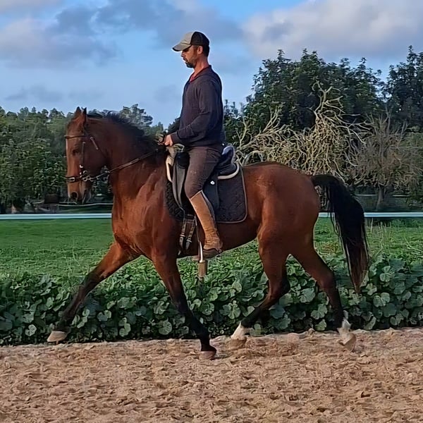 We present a highly talented dressage mare of exceptional quality, suitable for both an experienced rider and someone with limited riding skills, including children. This mare stands out for her friendly temperament and very easy handling on the ground. She was raised in a herd and lives peacefully with other horses in a free-range environment, consistently demonstrating good social behavior. The current owner has had her since she was one year old, ensuring a clean, consistent handling history without any issues, and confirms that she has been the main horse in her training and care. When mounted, she is particularly refined and highly responsive to aids. She does not require spurs or a whip, as she possesses natural impulsion. Despite her beauty and refined appearance, she impresses with her propulsion strength and excellent natural balance in all exercises. She has been trained in classical dressage and has a solid foundation, making her an excellent project for further development. At the same time, due to her characteristics, she would be very easy to retrain as a working equitation horse if the future owner wishes. She is also a very versatile mare. Her routine includes weekly trail rides, during which she always remains confident, reliable, and balanced in any situation. She can also jump small obstacles. She has never been shod and has healthy, strong hooves with remarkable resilience, reflecting careful, natural management and meticulous care. In summary, this is a young mare with a promising sporting career ahead and significant potential for growth. She is the ideal candidate for any rider seeking a safe, noble, and reliable horse, yet elegant, sensitive, and full of potential. A wonderful opportunity to acquire a mare that combines beauty, versatility, and a work ethic that is hard to find.