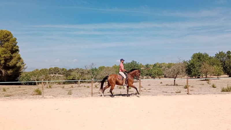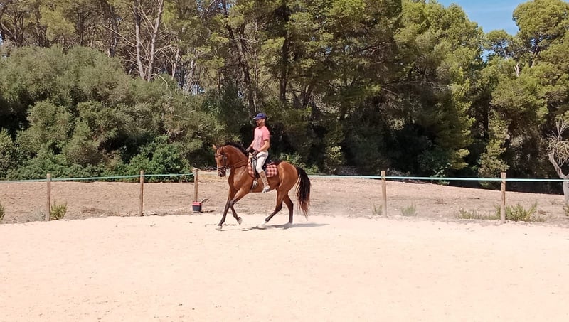Presentamos una yegua de doma clásica de una calidad excepcional, capaz de satisfacer tanto a un jinete experimentado como a alguien con poco nivel de equitación, e incluso a un niño. Se trata de una yegua que destaca por su carácter afable y por un manejo muy sencillo pie a tierra. Ha sido criada en manada y convive con otros caballos en libertad, mostrando siempre una buena conducta social. El propietario actual la tiene desde que tenía un año, lo que garantiza un historial de manejo limpio, coherente y sin problemas, y confirma que ha sido la yegua principal en su entrenamiento y atención. A la hora de montarla, es una yegua especialmente fina y sensible a las ayudas. No necesita ni espuelas ni fusta, ya que dispone de una impulsión natural. A pesar de su belleza y de sus formas refinadas, sorprende por su fuerza de propulsión y por el buen equilibrio natural que muestra en todos los ejercicios. Ha sido trabajada en doma clásica y dispone de una base sólida que la convierte en un proyecto excelente para seguir progresando. Al mismo tiempo, debido a sus características, sería muy sencillo reconvertirla como yegua de equitación de trabajo si el futuro propietario así lo deseara. Es también una yegua muy versátil. Forma parte de su rutina salir semanalmente a realizar paseos por el campo, en los cuales se muestra siempre segura, confiable y equilibrada ante cualquier situación. Permite igualmente saltar pequeños obstáculos. Nunca ha llevado herraduras y presenta cascos sanos, fuertes y de una resistencia destacable, lo que confirma un cuidado riguroso y un manejo natural coherente. Nos encontramos, en definitiva, ante una yegua joven con una larga carrera deportiva por delante y con un margen de mejora muy amplio. Es la candidata ideal para cualquier jinete que busque un caballo seguro, noble y fiable, pero al mismo tiempo elegante, sensible y lleno de potencial. Una oportunidad magnífica para adquirir una yegua que combina belleza, versatilidad y una calidad de trabajo difícil de encontrar.