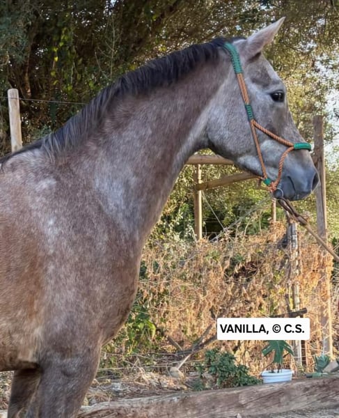 VANILLA ist eine junge HISPANOARABER Stute, geboren am 05.05.2022. Sie ist voll im Wachstum, z.Zt. 1.57, da kommt noch einiges. Ihren bildschöne Vollblutaraber Vater ALAZET kann sie nicht verleugnen. Follower kennen ihn aus meinen Posts. Er hat beste Papiere. Die PRE Mutter ist leider nicht eingetragen, weswegen VANILLA nur einen Equidenpass ohne Abstammung hat. Sie ist nun 3 Monate unterm Sattel und macht ihre Sache mega gut. Immer leistungsbereit, immer gut drauf🥰 Meldet Euch für diese wunderbare Stute auf WHATSAPP 0034 670 097 903 Eure Carmen