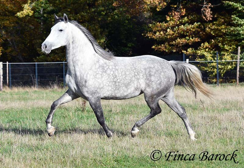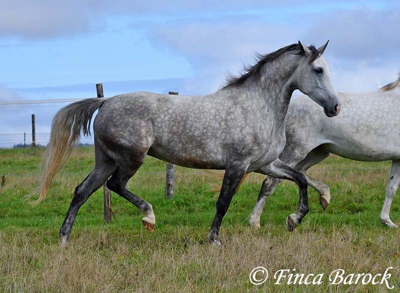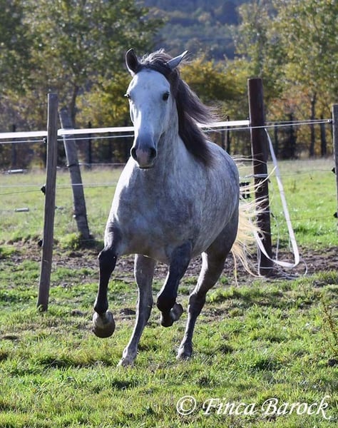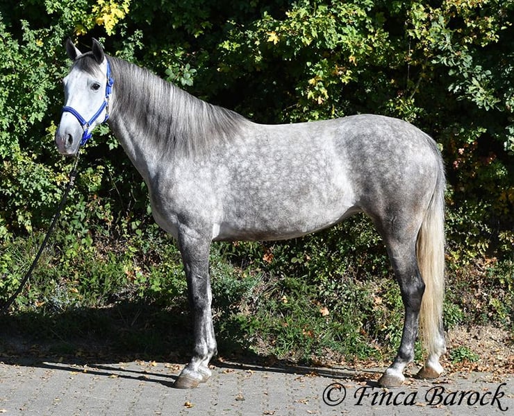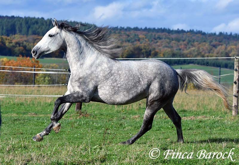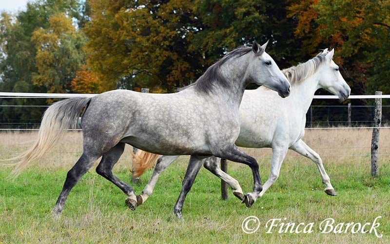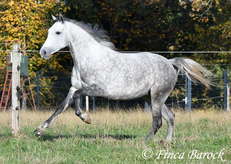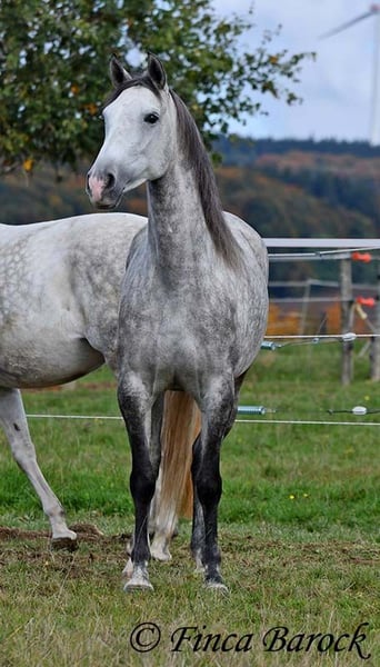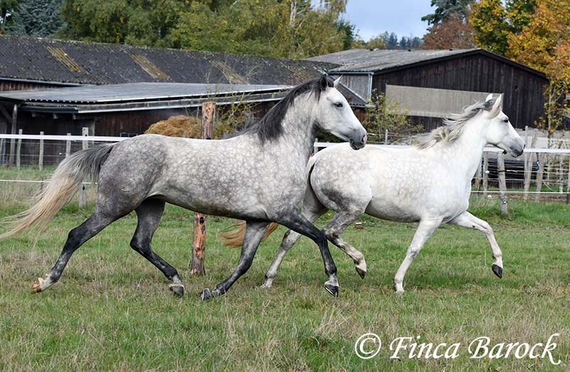 Rasse: Hispanoaraber Name: Jugadora Geschlecht: Stute Stockmaß: 160 cm Alter: 07.04.2020 Farbe: Schimmel Preis: 9999 € Vater: Velero II MVB 25 % v. Azacan 50 % Mutter: Novata LXXIII v. Airoso XII a. d. Famosa lX (Cartujano) Jugadora ist eine hübsche, kompakte Lady mit solider Bacis die auf neue Aufgaben wartet. Sie ist in den GGA geritten, kennt mehr Gelände als Viereck. Aber auch hier braucht Sie sich nicht zu verstecken. Sie hat sitzbequme Bewegungen, arbeitet motiviert mit und freut sich über Abwechslung. Gelände kennt Sie sowohl alleine als auch in der Gruppe. Sie zeigt sich sehr souverän draußen, kennt Straßenverkehr, das überreiten von einer Autobahnbrücke sowie durch einen Tunnel unter der Autobahn. Das plötzliche Auftauchen von einem Fahrradfahrer von hinten hat den Reiter mehr erschreckt als Jugadora ;-) Im Umgang ist Jugadora freundlich, dem Menschen zugewandt und verschmust. Sie ist Herdenhaltung gewöhnt und zeigt sich sehr verträglich auch mit eher dominanten Pferden. Eine tolle Maus, welche durch ihren kompakten Rahmen sehr gut abgedeckt und bereit für neue Abenteuer ist. Dazu hat Sie eine interessante Abstammung mit viel Cartujanoblut. inkl. klinischer tierärztlicher Untersuchung und Röntgenbildern Kontakt: Finca Barock, Tel. 0173-696 31 81, 56291 Wiebelsheim