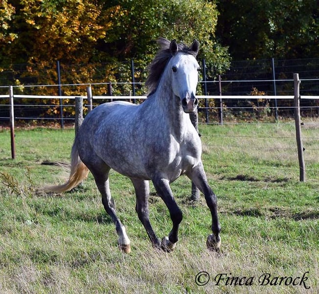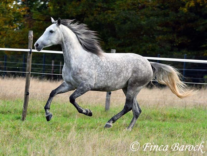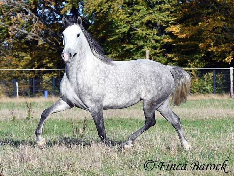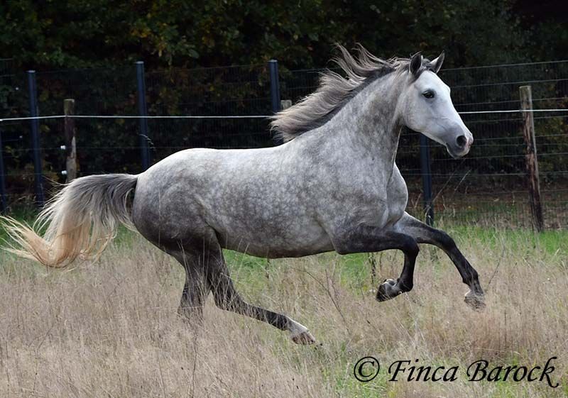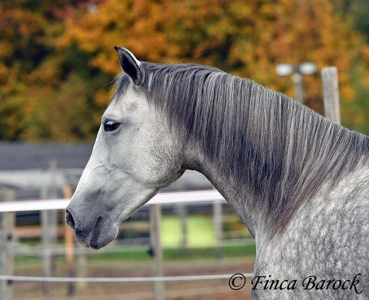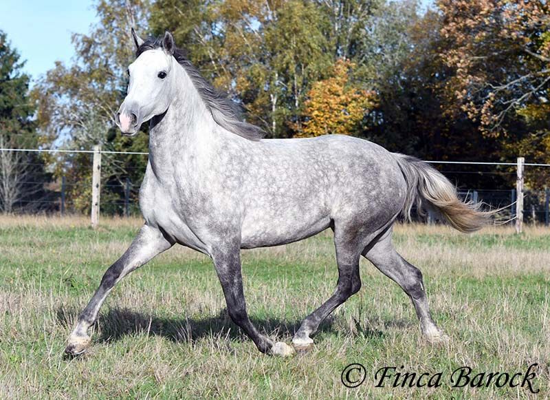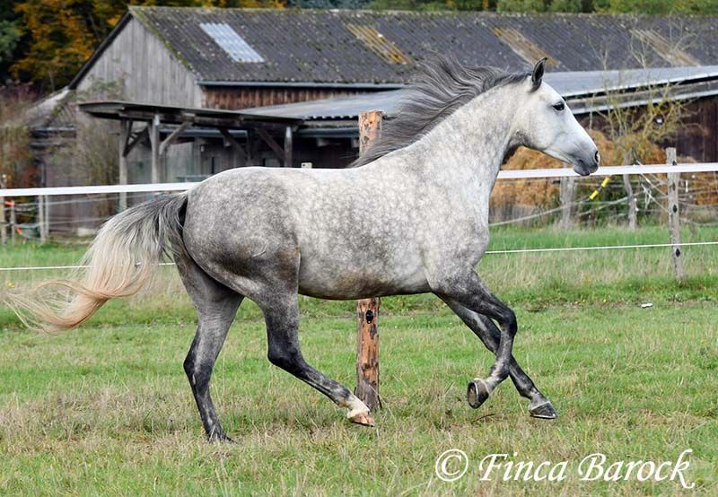 Rasse: Hispanoaraber Name: Jugadora Geschlecht: Stute Stockmaß: 160 cm Alter: 07.04.2020 Farbe: Schimmel Preis: 9999 € Vater: Velero II MVB 25 % v. Azacan 50 % Mutter: Novata LXXIII v. Airoso XII a. d. Famosa lX (Cartujano) Jugadora ist eine hübsche, kompakte Lady mit solider Bacis die auf neue Aufgaben wartet. Sie ist in den GGA geritten, kennt mehr Gelände als Viereck. Aber auch hier braucht Sie sich nicht zu verstecken. Sie hat sitzbequme Bewegungen, arbeitet motiviert mit und freut sich über Abwechslung. Gelände kennt Sie sowohl alleine als auch in der Gruppe. Sie zeigt sich sehr souverän draußen, kennt Straßenverkehr, das überreiten von einer Autobahnbrücke sowie durch einen Tunnel unter der Autobahn. Das plötzliche Auftauchen von einem Fahrradfahrer von hinten hat den Reiter mehr erschreckt als Jugadora ;-) Im Umgang ist Jugadora freundlich, dem Menschen zugewandt und verschmust. Sie ist Herdenhaltung gewöhnt und zeigt sich sehr verträglich auch mit eher dominanten Pferden. Eine tolle Maus, welche durch ihren kompakten Rahmen sehr gut abgedeckt und bereit für neue Abenteuer ist. Dazu hat Sie eine interessante Abstammung mit viel Cartujanoblut. inkl. klinischer tierärztlicher Untersuchung und Röntgenbildern Kontakt: Finca Barock, Tel. 0173-696 31 81, 56291 Wiebelsheim