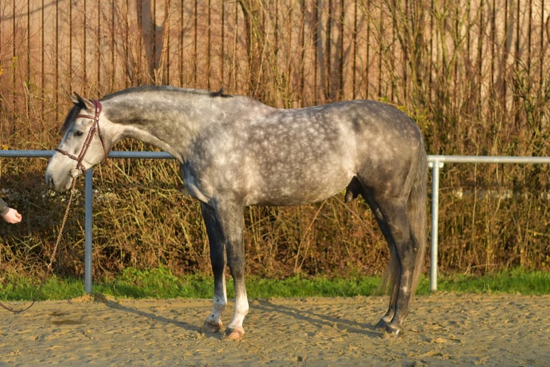 Absolutely stunning breeding stallion Cici – your future partner in show jumping! We are pleased to introduce Cici, an exceptionally talented and beautiful breeding stallion. Cici stands out due to his high quality and impressive jumping ability. With his calm and well-mannered nature both on the ground and under saddle, he is the perfect partner for ambitious riders. First-class jumping talent: Cici jumps effortlessly and consistently demonstrates eagerness to learn and motivation during training. Even at competitions, such as a 1.20m course, he handles the challenges with ease. He successfully completed a 50-day stallion performance test in jumping and is freshly shod – with no issues! Ready for use and easy to handle: Cici is immediately ready for competition and prepared to be ridden. Under saddle, he behaves stallion-like in a discreet manner and does not show interest in mares. Additionally, he is well-trained and also makes a great impression in dressage. Special offer: If taken immediately, you will receive a 5% discount on the sale price! Test opportunity: We offer you the chance to test Cici with us for one week, accompanied by experienced trainers. This trial week can be tailored to your needs and includes lessons as well as practical experience. Please note that a trial fee applies. Trial riding: You are welcome to visit and see Cici in person. The cost for a test ride or viewing is €50 per person. Seize this unique opportunity to get to know Cici and see his potential firsthand! We look forward to your inquiry!
