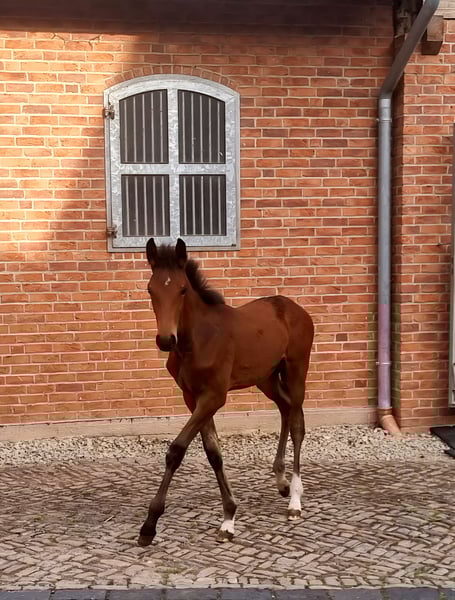 Angeboten wird ein bildschöner, ausdrucks- und bewegungsstarker Holsteiner Hengst von Million Dollar x Comme il faut x Caretano aus dem Stamm 104A. Urgroßmutter Isett von Calletto I hat in unterschiedlichen Anpaarungen mehrere sporterfolgreiche Pferde hervorgebracht (Quicky H, Casino Royale, Campino H) aktuell machen ihre Enkel Zalazar D und Victoria D auf sich aufmerksam . Aus der hochinteressant gezogenen und fruchtbaren Großmutter U-Careta entstammen inzwischen 9 Pferde, darunter die in der Vielseitigkeit in den USA erfolgreichen Friday und Clueso. Die weiteren Nachkommen zeichnen sich ebenfalls durch Leistungsbereitschaft, hohes Vermögen und gute Rittigkeit aus. Die Mutter Holly KM musste wegen einer Verletzung bereits früh in die Zucht wechseln, erhielt eine Bezpr und brachte bislang 5 Fohlen, 4 davon prämiert. Der Hengst steht in kleiner Herde (3 Stuten, 3 Fohlen) und wächst mit Menschenbezug auf. Er ist artig und gut zu händeln (kennt Halfter, Hufschmied und Tierarzt). Er ist prämiert und kann bei Interesse gern besichtigt werden.Weitere Informationen gern auf Anfrage.