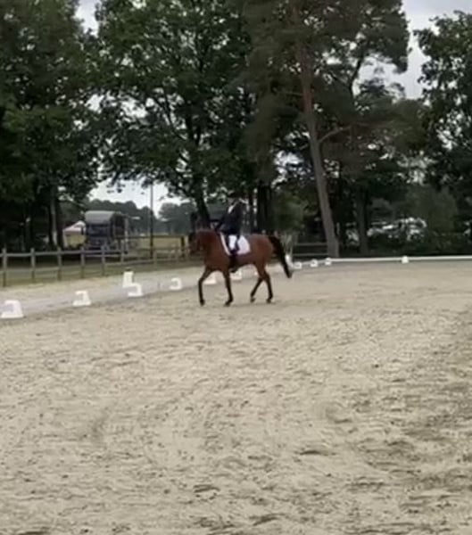 Ivy 10-jährige Holsteiner Stute von Hermes de Lux x Aloube Z Ivy ist dieses Jahr VL und CCI 2* platziert. Ivy hatte 5 j. ein Hengstfohlen von Central Park, welches über den OS-Verband mit Eliteauszeichnung versehen wurde. Ihr jetzt 4 j. Nachwuchs kann gerne bei mir angeguckt werden. Ivy ist von mir selbst gezogen (Mutter lief mit mir bis S-Springen) und nur als Fohlen in einer Fohlengruppe gewesen. Ende 2 j. ist Ivy dann zu mir gekommen. Dadurch ist Ivy erst 6 j. Auf Turnier vorgestellt worden und eigentlich als reines Springpferd ausgebildet worden. Durch einen Zufall sind wir dann in der Vielseitigkeit gelandet, so dass Ivy Ende 8 j. ihre erste VS lief. Ihre Stärke liegt in der VS im Springen. Da ist uns dieses Jahr kein Springfehler unterlaufen und konnten somit das mittelmäßige Dressurergebnis etwas ausgleichen (haben aber auch schon eine 36er Dressur geritten). Dressur ist aber auch nicht meine Paradedisziplin. Im Gelände sollte Ivy sportlich geritten werden. Ideal wäre ein/e Junior/in die z.b. vom Pony auf Pferd umsteigen möchte oder zweigleisig fahren möchte und so mit Ivy zusammenwachsen könnte. Im Winter läuft Ivy barfuß und nur während der VS-Saison mit vier Eisen. Bei ernsthaften Interesse verschicke ich gerne ein Video. Preis: 32.000 €