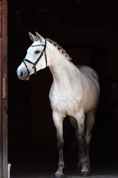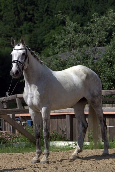 Vanwege persoonlijke redenen bied ik mijn sportieve en charmante Holsteiner schimmelmerrie (1,65 m, geboren in 2013) te koop aan. Ze beschikt over wedstrijdervaring, heeft met mij succesvol haar licentieproef afgelegd en overtuigt door haar snelle, wendbare en foutloze springtechniek. Na een twee jaar durende kraampauze (gezond veulen) is ze weer in regelmatig training en onmiddellijk inzetbaar. Ik kan me haar goed voorstellen in de juniorensport. Karakter & omgang: Deze merrie is lief, gemotiveerd en betrouwbaar – zowel in het parcours, tijdens buitenritten als in training. In het terrein snel, maar altijd onder controle. Braaf bij het laden, de hoefsmid en de dierenarts, maar vereist gevoelige handen en een paardvriendelijke omgang. Ze houdt van open stallen of weidegang en is in de kudde zeer sociaal. Gezondheid & huisvesting: Barhuf, zeer goede hoeven – in het terrein voorhoefbescherming met hoefijzers of hoefbeschuuring. Geen koliek of ernstige blessures. Regelmatig gevaccineerd, ontwormd en osteopathisch behandeld. Laatste tandartsbeurt in mei 2025, chiropractie in maart 2025. Fokwaarde: Geregistreerd in het Holsteiner stamboek met districtsprijs. Vader: Canoso – grootvader: Baldini I. Heeft al succesvol een veulen grootgebracht. Locatie: Oostenrijk, Steiermark, prijs VHB
