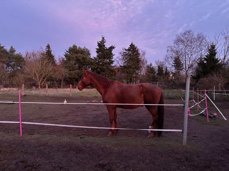 With a heavy heart, I am seeking a new home for my 17-year-old Holsteiner mare, Donna. Donna is a very special soul and will only be placed in the best hands – a true 5-star home is a must for me. She is sensitive, intuitive, and longs for a person with whom she can settle permanently. In dressage, she proves to be very reliable and works beautifully with her rider; she enjoys jumping and approaches it with enthusiasm. She is always honest and clear-minded. Once she has gained your trust, she will stand by her person through thick and thin and give her all. I wish for Donna to find someone who will truly accompany her until the end of her life – with heart, understanding, and lots of love. Someone who enjoys working with her, encourages her, but always cares for her well-being and puts her first. I can easily imagine her being suitable for dressage tests or small competitions – although she has not yet been shown in competitions. Donna is familiar with both box-stall and pasture management, and she has been kept in both environments. If desired, suitable tack and accessories can be included. ❗ No riding school use ❗ No breeding If you feel that Donna might be the right horse for you and you can offer her a loving home, I would be very happy to hear from you. Would you like to meet Donna? Please feel free to contact me 🐴💛