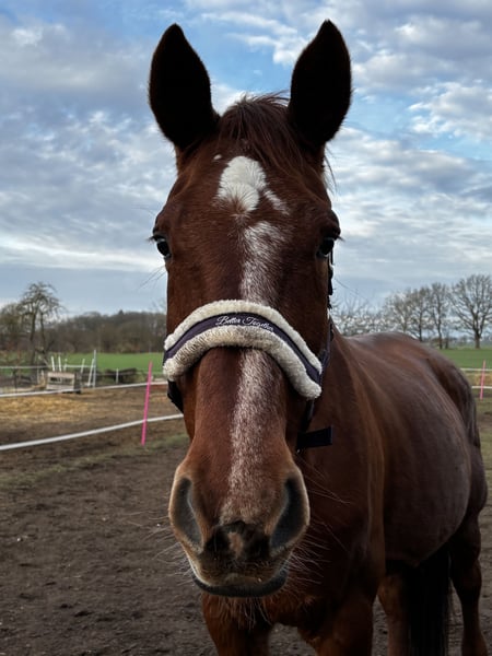 Schweren Herzens suche ich für meine 17 jährige Holsteiner Stute Donna ein neues Zuhause. Donna ist eine ganz besondere Seele und wird ausschließlich in allerbeste Hände abgegeben – ein echtes 5-Sterne-Zuhause ist für mich Voraussetzung. Sie ist sensibel, feinfühlig und wünscht sich einen Menschen, bei dem sie für immer ankommen darf. In der Dressur zeigt sie sich sehr zuverlässig und arbeitet schön mit, beim Springen ist sie mit Freude dabei. Dabei ist sie stets ehrlich und klar im Kopf. Hat man einmal ihr Vertrauen gewonnen, geht sie mit ihrem Menschen durch dick und dünn und gibt einfach alles. Ich wünsche mir für Donna jemanden, der sie wirklich bis an ihr Lebensende begleitet – mit Herz, Verstand und ganz viel Liebe. Jemand, der Spaß mit ihr hat, sie fördert, aber dabei immer auf sie achtet und ihr Wohl an erste Stelle setzt. Ich kann mir gut vorstellen, dass sie noch für Abzeichen oder kleinere Turniere geeignet ist – bisher wurde sie jedoch noch nicht auf Turnieren vorgestellt. Donna kennt sowohl Boxenhaltung als auch Offenstall und ist in beiden Haltungsformen vertraut. Auf Wunsch kann passendes Zubehör gerne mit übernommen werden. ❗ Kein Schulbetrieb ❗ Keine Zucht Wenn du das Gefühl hast, dass Donna genau dein Pferd sein könnte und du ihr ein liebevolles Zuhause bieten möchtest, freue ich mich sehr, von dir zu hören. Hast du Lust, Donna kennenzulernen? Dann melde dich gerne bei mir 🐴💛