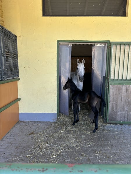 We are offering our Holsteiner broodmare from the 18A2 dam line for sale. Her sire is Clearway by Capitol I, and her dam is Jodett by Lavall II. Zoe was foaled in 2007, stands approximately 16.1 hh, and has been with us for 12 years. In 2023 and 2024, she each delivered a filly, both of which can be visited. Zoe is an excellent mother who always cares attentively for her foals. She handled both deliveries on her own during the night, and her foals nursed immediately after standing up. At five years old, Zoe was started under saddle by her breeders and later came to us. We also continued riding her, but due to our schedule, we couldn't always work with her consistently. She has no health issues. She lives with us in a paddock box with daily turnout either on pasture or on a sand paddock. Why are we selling her? Since we currently have two two-year-old fillies and a three-year-old mare, our young horse quota is full for now. We would like to give a breeder the opportunity to realize their dream of producing their own foal — this mare makes that possible. If you are genuinely interested, please get in touch. We are happy to send additional photos and videos. Location: 98617 Stedtlingen, Rhönblick
