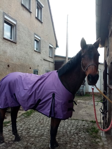 We unfortunately have to part with our mare Viola. She was a broodmare with her previous owner for many years, descending from the Holsteiner broodmare line 275. She has produced several successful foals. She has also been ridden by experienced riders. She requires a firm hand, as she has a very strong character. Despite being 21 years old, she still has a lot to offer and is too good to just stand around. Unfortunately, she does not get along with our very subordinate gelding. She gets along very well with our pony mare and with dominant stallions. She is safely shod and handles groundwork and grooming very well. She had her teeth checked and floated in early March. Naturally, she is wormed and vaccinated. She needs plenty of green forage, which the other horses here unfortunately do not get. We hope she will find a loving and suitable home.