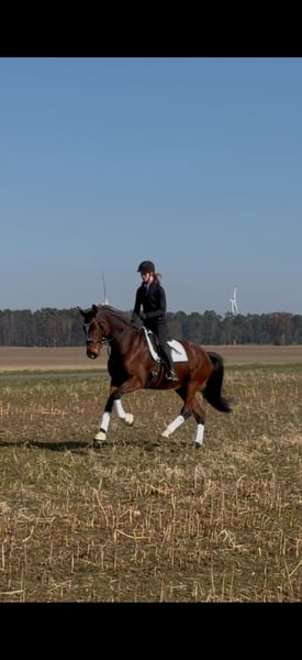 Na sprzedaż piękna 5-letnia klacz holsztyńska od Dinken x Calido. Dailydream to imponująca klacz, która potrafi zaprezentować się z trzema bardzo dobrymi chody i wspaniałym profilem bocznym. Cudownie się na niej jeździ, zachwyca swoją skłonnością do pracy i nastawieniem do jazdy. Ponadto wykazuje siłę i ostrożność podczas pierwszych małych skoków pod siodłem. W kontaktach jest łatwa w obsłudze i bardzo przywiązana do ludzi. Świetny młody koń dla ambitnego jeźdźca. Ponieważ jest jeszcze na początku swojej edukacji, nie jest odpowiednia dla początkujących. Dostępne dobre zdjęcia rentgenowskie. Wysokość w kłębie około 172 cm. Dla filmów i dodatkowych pytań prosimy wyłącznie o kontakt telefoniczny: 01752555635.