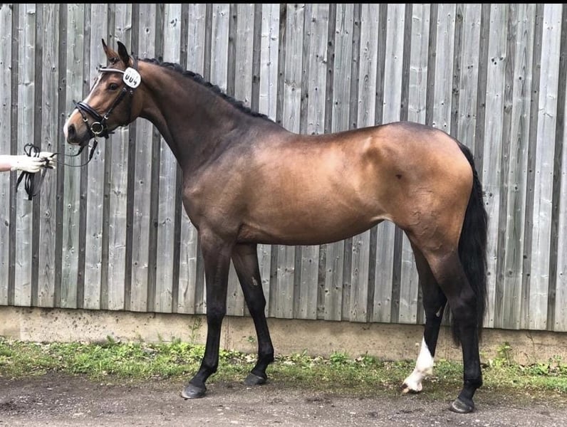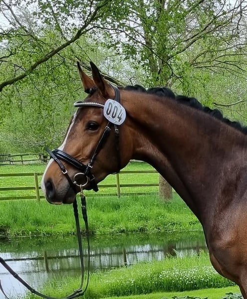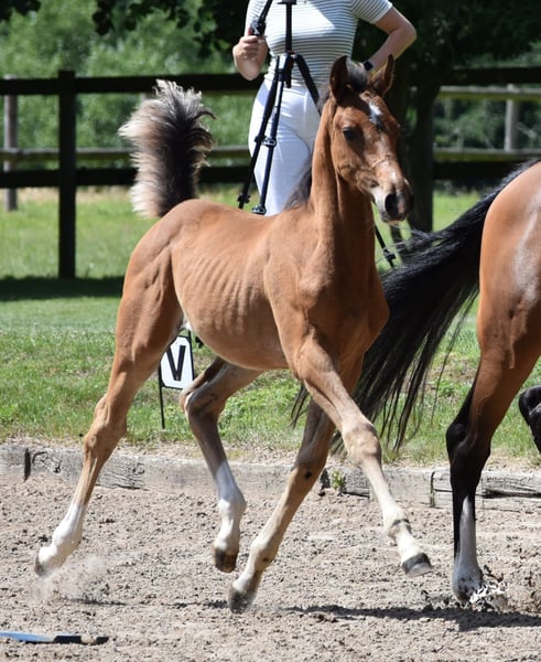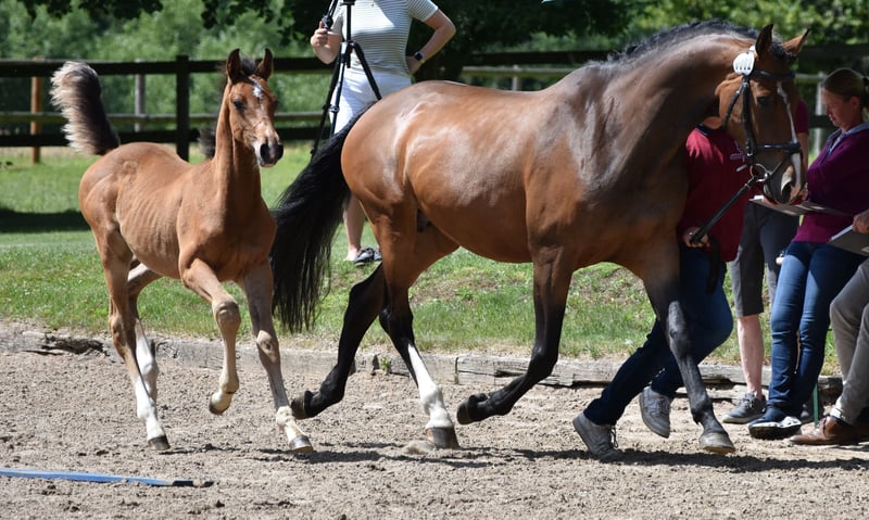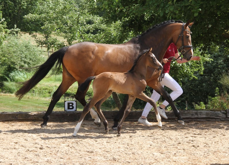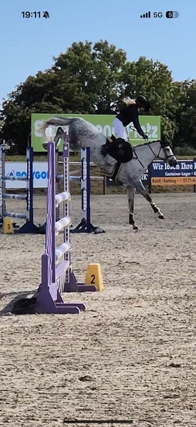 Due to the discontinuation of breeding for age reasons, we are selling our beautiful mare Larissa II. She has been ridden by a young girl whose mother bought Ginella, and she successfully competes up to 120 cm in show jumping. Larissa has a lot of presence, a pretty face, and is strong-moving with an expansive walk. She is very well-mannered in handling. She also has talent for dressage. Larissa was the champion mare of the Körbezirk Plön. Her sire is Origi d'O by Diamant de Semilly. The dam Ginella is by Crumble - Colman. Larissa has a colt foal at foot (also by Chicago Blue), which will be weaned in October and is for sale. All maternal ancestors have been bred by us (4 generations)! This is Larissa's 3rd foal. Her 1st foal is a filly by Cornet's Obolensky. All foals are correct, strong-moving with a lot of presence. The foals are still in our possession and can be viewed; they are also for sale. We have been breeding Holsteiners for over 50 years, but unfortunately, we now have to part with them as we have no successors.