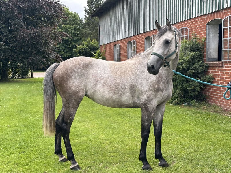 For sale is a beautiful Holstein mare, born in 2018. This elegant gray mare impresses with a height of 166 cm and is specially trained for jumping. GK Katja shows great potential in free jumping and impresses with her willingness to perform and her impeccable character. Just 6 weeks under saddle, she is very well-behaved and always wants to please her rider. As GK Katja has only been under saddle for 6 weeks, she needs a rider who is familiar with training young horses. GK Katja does not show any naughtiness and is also very sweet to handle. She is ideal for ambitious riders who are looking for a reliable partner for future show jumping. Of course, we also have a whole range of other very promising young horses on our farm: Whether foals, yearlings, broodmares or riding horses - if you are looking for high quality, you have come to the right place. Feel free to make an appointment with us, we look forward to hearing from you! www.gestuet-kriseby.de