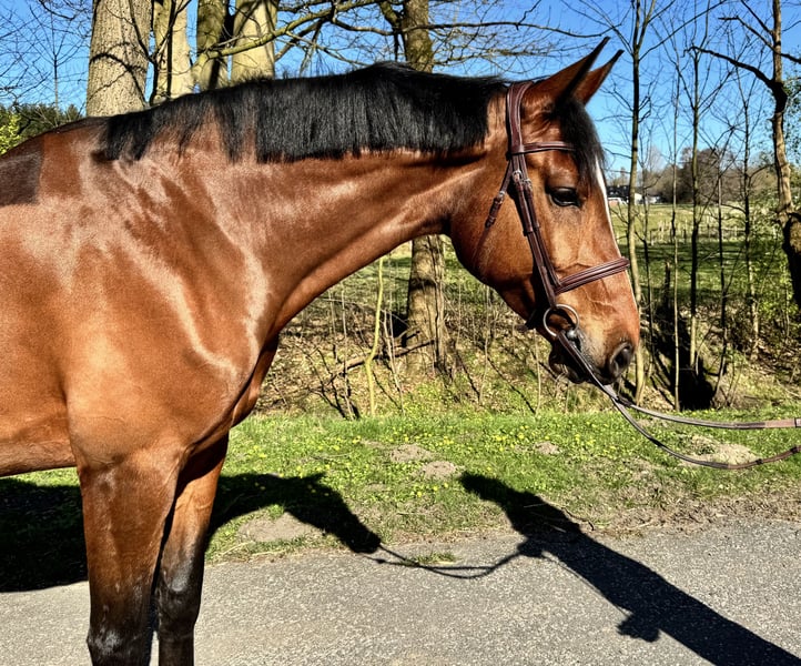 Good Oersdorfs Miley was born and raised with us. She is a versatile and well-rounded riding horse, consistently and thoughtfully trained. Whether during daily groundwork, show jumping practice, trail riding, gallop training, or simply enjoying leisure rides, Miley is always a wonderful partner for her rider. She has also gained competition experience, so unfamiliar environments are no problem for her. We believe Miley is best suited for a rider looking for a reliable partner who is open to various disciplines, as she enjoys tackling different tasks with her rider. Her pedigree is particularly impressive and will appeal to breeders; her dam line is especially interesting. Her sire, Comme il faut, won gold at the Olympic Games in show jumping, and Miley’s dam was highly successful in jumping up to S level. All her foals have received a foal premium. Due to a rider’s extended stay abroad and the resulting reduction in herd size, Miley is only being sold to a suitable, caring home. A three-year breeding evaluation with minor findings is available. Further information about Miley is also available by phone at 0173 9171091.