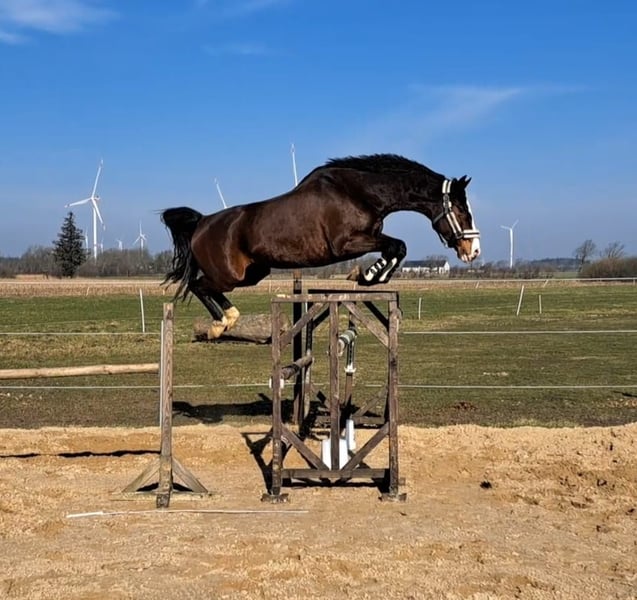 Looping Luzie is a beautiful mare with three excellent basic gaits and outstanding jumping ability. She has competed in L-level show jumping courses and demonstrates a very committed and reliable performance. She has already participated in several performance tests and has a strong go, making her suitable for experienced riders. Luzie is not recommended for timid or inexperienced riders, as she can be lively and occasionally tests boundaries. For breeding purposes, she is an absolutely fantastic mare. She completed her mare performance test in Holstein with a very good rating and is classified as an elite mare. She is farrier- and loading-friendly, with a very good ultrasound examination of her back and neck. Unfortunately, she kicks in the stable, which is reflected in her price. We purchased her last year due to her outstanding pedigree, but she was not bred last year. We did not ride her during that time, so she would need to be restarted under saddle.