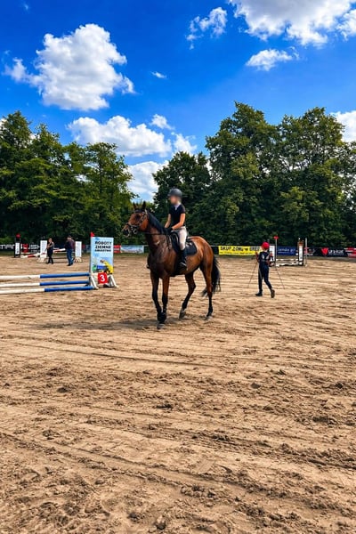 Na sprzedaż: 7-letnia klacz holsztyńska – Malito de Rêve / Esteban. Efektowna, piękna klacz o wzroście ok. 175 cm w kłębie, z bardzo dobrym ruchem i potencjałem skokowym. Silna, nowoczesnego typu. Po pierwszych startach, do dalszego treningu. Klacz o dużej wartości hodowlanej – dała bardzo dobrego źrebaka. Posiada komplet bardzo dobrych badań weterynaryjnych (RTG wraz ze zdjęciami szyi) do wglądu. Klacz ma sportowy, silny temperament nie jest koniem dla amatora – przeznaczona dla doświadczonego jeźdźca lub ambitnego zawodnika.