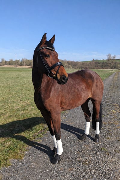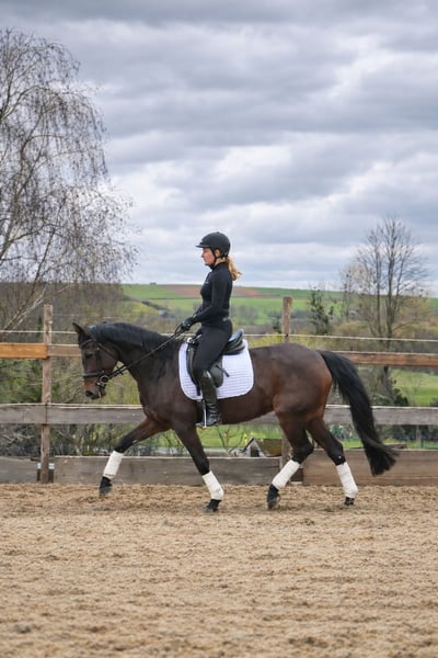 For sale on behalf of the owner: Hermina is an 8-year-old Holsteiner mare standing at 16.2 hh, sired by Hermes de Lux out of Chicos Boy. Hermina was gently and effortlessly backed by her breeder and owner. Due to extended growth phases and pregnancy, she has received limited training so far. Currently, Hermina is in professional riding instruction and is demonstrating her versatile potential. She features good, supple gaits and refined aids. In free jumping, Hermina shows talent and caution at the jump; under saddle, only small jumps have been performed so far. She particularly enjoys hacking out. She is fearless, very herd-friendly, easy to handle, and cautious around children. Hermina still requires further development with a confident rider. With proper guidance and additional training, we can also see her as a suitable horse for juniors or beginners. Additional videos and photos available upon request (preferably via WhatsApp). Current X-rays will follow. Price will increase with further training.
