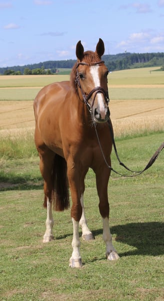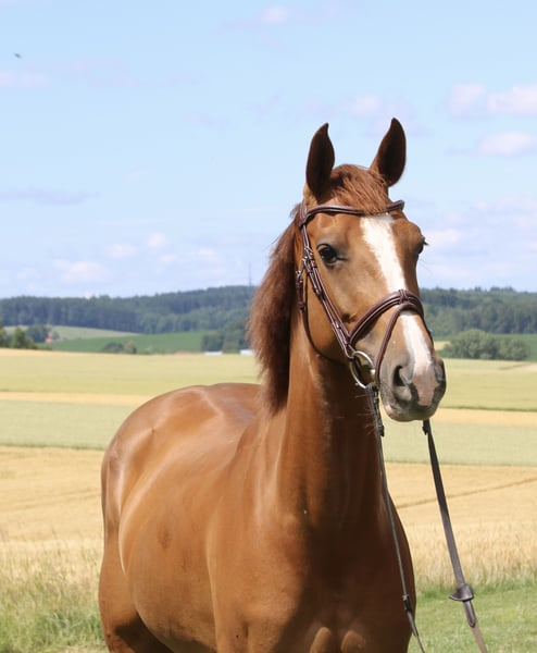 Wunderschön gezeichnete Fuchsstute mit Top-Charakter und sportlicher Qualität Diese außergewöhnlich typvolle Fuchsstute begleitet uns seit Beginn ihrer Sportkarriere und hat sich in dieser Zeit als absolut leistungsbereite und ehrliche Partnerin bewiesen. Sie überzeugt nicht nur durch ihre elegante Erscheinung und ihre ausdrucksstarke Zeichnung, sondern vor allem durch ihren hervorragenden Charakter: stets motiviert, klar im Kopf und mit großer Freude an der Arbeit. Im Parcours verfügt sie über Erfahrung bis 1,30 m und kann zahlreiche Siege und Platzierungen in der mittelschweren Klasse vorweisen. Sie ist sehr angenehm zu reiten, fein an den Hilfen und vermittelt ihrem Reiter ein sicheres, positives Gefühl. Ob im Training oder auf dem Turnier – sie zeigt konstante Leistungen, Übersicht am Sprung und echtes Kämpferherz. Dabei bleibt sie immer ehrlich und leistungsbereit. Für diese besondere Stute wünschen wir uns einen wertschätzenden Platz, an dem sie weiterhin gefördert wird und gleichzeitig als echtes Herzenspferd geschätzt wird. Sie ist eine Partnerin, mit der man wachsen, Erfolge feiern und einfach Freude haben kann. Bei ernsthaftem Interesse freuen wir uns über eine persönliche Kontaktaufnahme.