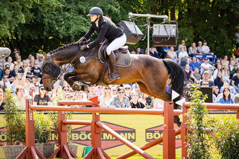 8-letnia córka Quibery – niewykorzystany talent skokowy, wykształcona w klasie M, zwycięska w 115 cm, doskonałe zdjęcia rentgenowskie Ta sportowa 8-letnia klacz od Quibery oferuje rzadką kombinację chęci do pracy, łatwości w jeździe i niewykorzystania. Przybyła do nas dopiero zimą i wcześniej była pokazana tylko raz na zawodach. W ciągu kilku miesięcy zajęła miejsca w konkursach skokowych do 115 cm i wygrała m.in. Derby Amatorów 115 cm na Derby w Hamburgu. Rodowód: Quibery x Carry Wiek: 8 lat Stan wyszkolenia: wykształcona w parkurze M Doświadczenie w zawodach: aktywna w zawodach od pół roku Sukcesy: wielokrotnie plasowana do 115 cm, zwycięstwo w Derby Amatorów Hamburg (115 cm) Charakter: zmotywowana, z dużą energią, bardzo łatwa w jeździe i obsłudze Ujeżdżenie: przyjemna w jeździe, pewna w kontakcie Terenu: chętnie wychodzi w teren, odporny na stres Zdrowie: aktualne zdjęcia rentgenowskie bez zmian Klacz nadaje się zarówno dla ambitnych amatorów, jak i dla jeźdźców, którzy szukają świeżego konia sportowego z perspektywą. Jej aktualny stan wyszkolenia, w połączeniu z jej nastawieniem i zdrowiem, czyni ją prawdziwym koniem przyszłości.
