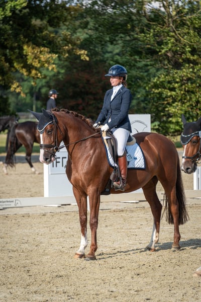 Zum Verkauf steht meine 9-jährige Stute (ca. 165 cm), geboren 2017, abstammend von Brantzau x Colman. Karla ist ein echtes Verlasspferd mit klarem Kopf und ehrlichem Wesen. Sie ist artig im Umgang und unter dem Sattel, leichtrittig und verzeiht Reiterfehler, wodurch sie sich ideal als Anfängerpferd, für Kinder oder für unsichere Reiter eignet. Auch im Gelände ist sie brav. Sie ist schmiede- und verladefromm. Karla war A-Dressur siegreich und L-Dressur platziert, außerdem hat sie Springpferde A* gewonnen und ist A** platziert. Vorne rechts hat Karla eine Hufknorpelverknöcherung, die sie aber nicht behindert. Sie läuft problemlos mit normalen, geschlossenen Eisen. Aktuell wird sie nicht gesprungen. 2021 brachte sie ein gesundes Fohlen zur Welt. Der Verkauf erfolgt ausschließlich wegen Zeitmangel aufgrund des Studiums. Ein Pferd mit Herz und hervorragendem Charakter, für Reiter, die einen zuverlässigen und ehrlichen Freizeitpartner suchen. Zubehör kann zusätzlich erworben werden