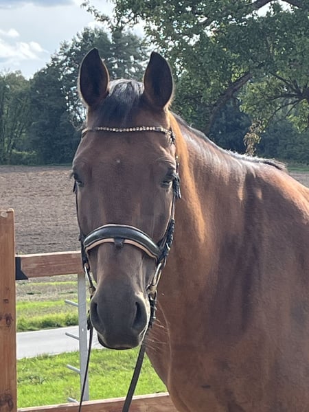 Chino Unser schicker Holsteiner Wallach ist 10 Jahre und 1,68 m groß. Im Umgang ist Chino super lieb, anhänglich und verschmust. Er besitzt eine gute Grundausbildung, wurde aber die letzten Jahre nur Freizeit geritten. Chino kann bis zur E/A-Dressur geritten werden, auch ein paar kleine Hindernisse kennt er. Chino besitzt volle Papiere, ist gechipt und entwurmt. Ein Transport wäre möglich!