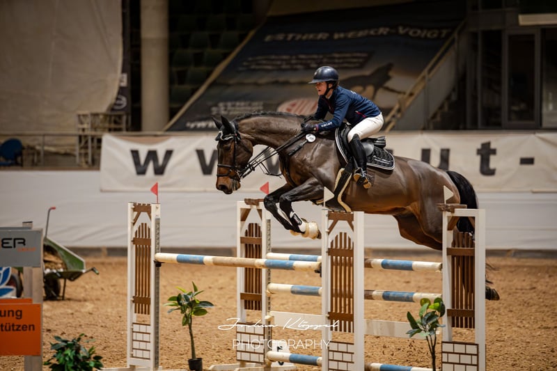 Un deportista bien colocado, con un talento enorme y un corazón de oro, listo para montar de inmediato. "Connor Deluxe H" — su nombre no promete demasiado — aquí se ofrece un caballo de ensueño absolutamente experimentado. Este elegante, alto y largo semental con una base sólida se mueve bien en las tres aires básicas, con elasticidad y volumen, especialmente en el galope. "Conny" es de movimientos suaves y cuenta con un temperamento ideal; su tamaño apenas se nota. Suficientemente enérgico, pero siempre calmado. En el trabajo de doma, es fácil de montar, incluso para amateurs, damas y jinetes jóvenes. En los saltos, sabe sorprender: además de un talento ilimitado, posee una técnica muy buena y una cautela marcada — siempre con buen basculamiento, ligero y con excelentes reflejos. En el manejo, es absolutamente tranquilo en todas las situaciones — Conny "está en paz consigo mismo". Corte, herrado, transporte, paseos, etc. — ¡no hay caballo más fácil de manejar! Busca un hogar 5* donde sus cualidades sean valoradas. También es muy apto para su uso en la disciplina de Equitación. Ha estado en la misma mano desde su potro, solo se vende por motivos de cría. Conny está sano y en excelente forma, cuenta con un informe radiológico actual. Clasificado para 2025 hasta 1,35 m, en perfectas condiciones para montar de inmediato y listo para 2026.