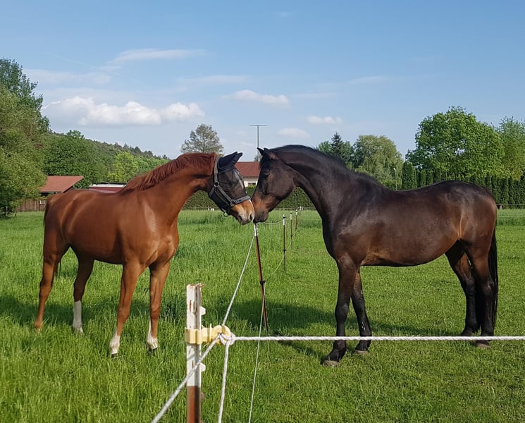 Wir verkaufen unseren Wallach Queck. Queck ist ein 15 jähriger Holsteiner und ca.174 cm gross. Aufgrund einer ausgeheilten Verletzung darf er nicht mehr springen, ist aber seit über einem Jahr wieder dressurmässig mit viel Spass zu reiten, was ihn zu einem super Pferd für ambitionierte Freizeitreiter*innen macht. Er ist sehr fein an der Hand und angenehm zu sitzen, und kennt von der Hilfengebung her auch noch viele Lektionen, die sich mit Training und mehr Kondition wieder erarbeiten lassen. Er läuft super an der Doppellonge, hat viel Spass bei der Bodenarbeit, und geht in Begleitung entspannt ins Gelände. Er ist sehr menschenbezogen und möchte gefordert, beschäftigt und betüddelt werden. Trotzdem ist er alles andere als ein Anfängerpferd. Er kann – je nach Tagesform - sowohl im Umgang als auch unterm Sattel ziemlich schwierig sein. Aus Erfahrung tritt dies bei regelmässiger und ausführlicher Beschäftigung mit ihm weniger auf. Genau dieses „Zeit mit ihm verbringen“ kommt bei uns leider gerade wegen Zeitmangel etwas kurz, weshalb wir ihn auch verkaufen möchten. Auf jeden Fall muss man selbstsicher und geduldig sein, sich nicht an der Nase herum führen lassen und sich auch nicht von seinen Clownereien - weder vom Boden noch im Sattel - beeindrucken lassen. Queck steht im Moment bei uns im Offenstall und das wünschen wir uns auch in Zukunft für ihn, da er so viel ausgeglichener ist. Aber auch eine Paddockbox mit tagsüber Koppelgang könnten wir uns für ihn vorstellen. Queck ist kein Notverkauf, und es gilt für uns definitiv Platz vor Preis. Passender Dressursattel (und evtl weiteres Zubehör) ist inclusive. Zur Beantwortung von Fragen und für mehr Details meldet euch einfach unverbindlich.