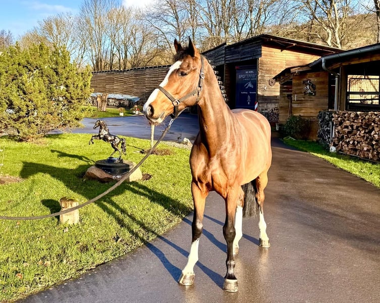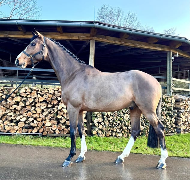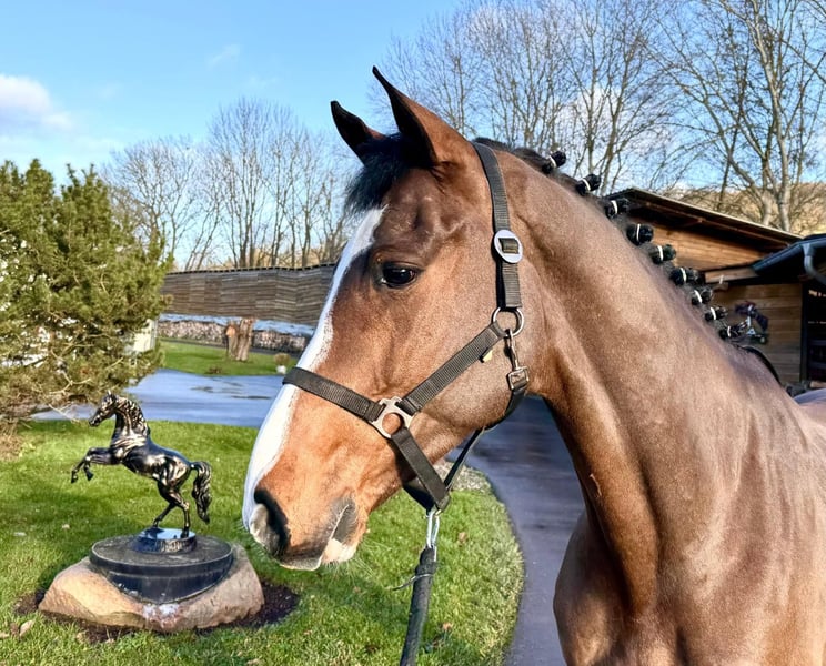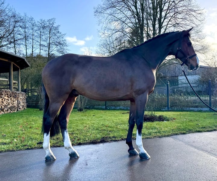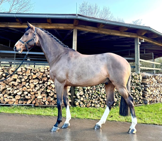 We are offering an exceptional Holsteiner gelding with absolute world-class genes for sale. This impressive bay not only impresses with his elegant appearance, but also with his super talent in jumping. He is a serial winner with a junior in jumping competitions up to class M. competitions up to medium class (1.25m). This gelding already shows potential for high-level show jumping and impresses with his outstanding technique and impressive ability. He is attentive, willing to learn and has a very even temperament, which makes him an ideal partner for ambitious amateurs (whether children or senior riders as well as anxious riders) as well as for professionals. He is super well-behaved in daily handling as well as in the field. If you are looking for a talented show jumper, then this Holsteiner could be just the right horse for you. For more information or to arrange a viewing, please contact us. We look forward to hearing from you! Phone: +49 (0) 171/4605744