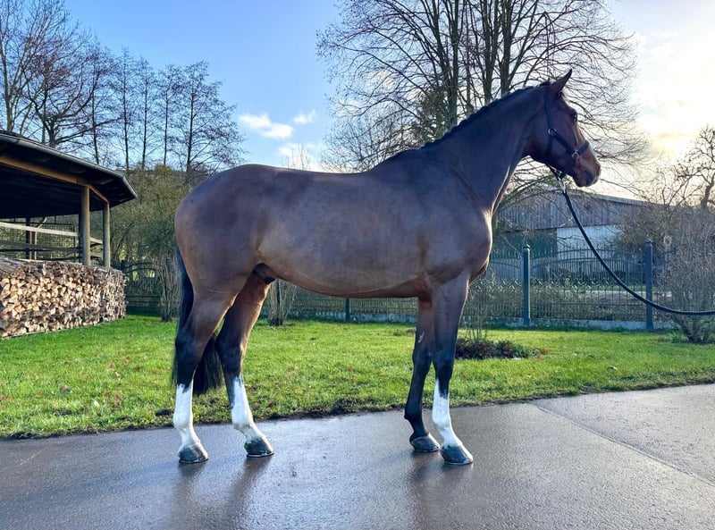 Offriamo in vendita un eccezionale castrone Holsteiner con geni di livello mondiale assoluto. Questo impressionante cavallo baio non solo colpisce per il suo aspetto elegante, ma anche per il suo super talento nel salto. È un vincitore seriale con uno junior in gare di salto fino alla classe M. concorsi fino alla media (1,25 m). Questo castrone mostra già un potenziale per il salto ostacoli di alto livello e colpisce per la sua tecnica eccezionale e la sua impressionante abilità. È attento, disposto a imparare e ha un temperamento molto equilibrato, il che lo rende un partner ideale sia per i dilettanti ambiziosi (bambini o cavalieri senior e cavalieri ansiosi) sia per i professionisti. È molto ben educato sia nella gestione quotidiana che in campo. Se siete alla ricerca di un saltatore di talento, questo Holsteiner potrebbe essere il cavallo giusto per voi. Per ulteriori informazioni o per organizzare una visita, contattateci. Saremo lieti di ascoltarvi! Telefono: +49 (0) 171/4605744