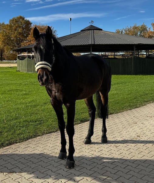 Dieser großrahmige, moderne 6-jährige Wallach überzeugt mit guter Einstellung, Übersicht und viel Vermögen am Sprung. Bereits in Springpferdeprüfungen der Klassen A und L platziert, zeigt er sich im Parcours stets konzentriert und leistungsbereit. Bereits in der Klasse M auf Turnier vorgestellt und 0 gewesen. Mit seinem hervorragenden Sprungablauf und dem nötigen Ehrgeiz bringt er alles mit, was man sich für den weiteren Aufbau im Turniersport wünscht. Auch im täglichen Training präsentiert er sich lernwillig und unkompliziert. Im Umgang ist er sehr brav! Mit seinen ca. 1,77 m ist er auch für größere Reiter und als Nachwuchspferd für den ambitionierten Turnierreiter geeignet. Aber auch kleinere Reiter haben ihren Spaß am Springen mit ihm und können ihn problemlos durch den Parcours reiten. Ein ideales Pferd für Reiter, die ein sportliches Talent mit Perspektive für mehr suchen. Cadilo kam bereits mit 3 Jahren zu uns, so dass wir seinen kompletten Weg bis heute begleitet haben. Er wurde 4 jährig gelegt. Röntgenbilder von Dezember 2024 liegen vor; ein Chip wurde gefunden und sofort entfernt. Keine anderen Befunde! Er ist nicht zu verschenken, muss nicht sofort weg und wird nicht an fragwürdige Interessenten verkauft!!! Für das Probereiten berechnen wir 30 Euro, die beim Kauf natürlich verrechnet werden. Ernstgemeinte Anfragen gerne per Nachricht hier oder per WhattsApp.