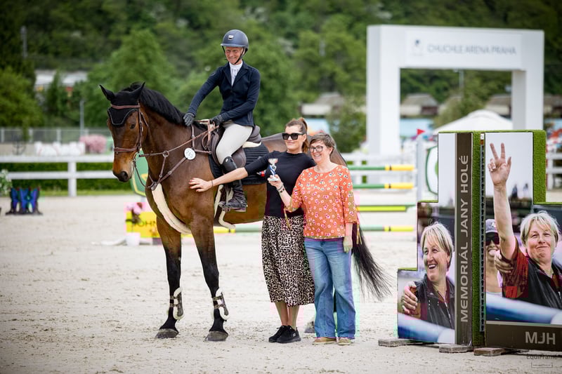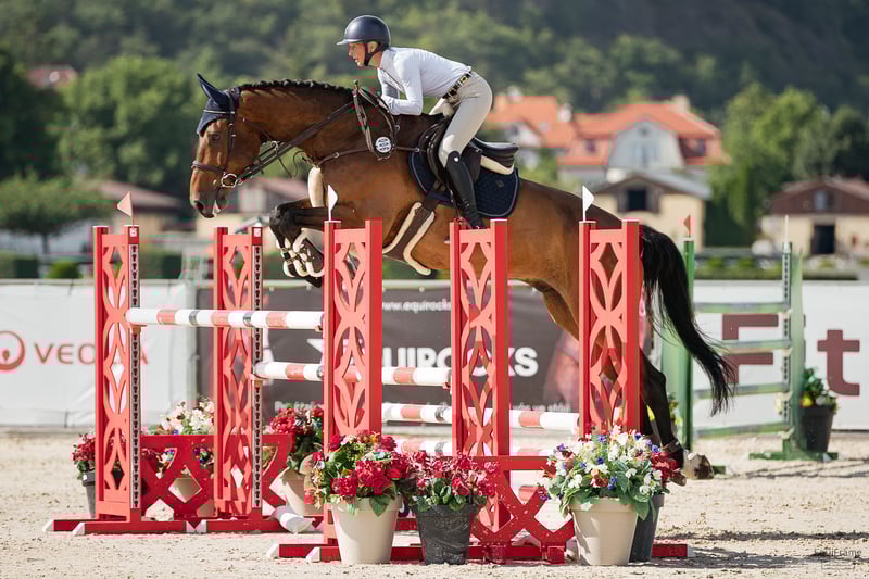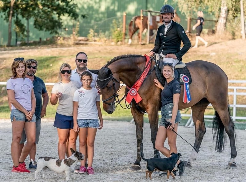 Je propose un hongre de 7 ans, fils de l'étalon Kannan, issu d'une jument par Colander/Contender. Ce cheval a été élevé par nous depuis sa naissance et a été monté par une femme. Son niveau actuel est de 135/140 cm en compétitions. C'est un cheval grand et fort qui montre un grand potentiel pour les grandes épreuves. Il a une grande capacité de saut et réalise encore des tours sans faute (très prudent). C'est un cheval gagnant grâce à son galop spacieux et sa facilité à tourner, ainsi que sa facilité de monte. Lors de la finale des chevaux de six ans au championnat des jeunes chevaux en République tchèque, il a terminé à la 3ème place et a obtenu d'autres classements au niveau 130/135. Il a un tempérament parfait et peut être manipulé par des enfants pour le transport, le nettoyage, etc. Il est complètement sain et a des radiographies claires. Pour plus d'informations ou pour organiser une visite, veuillez me contacter.