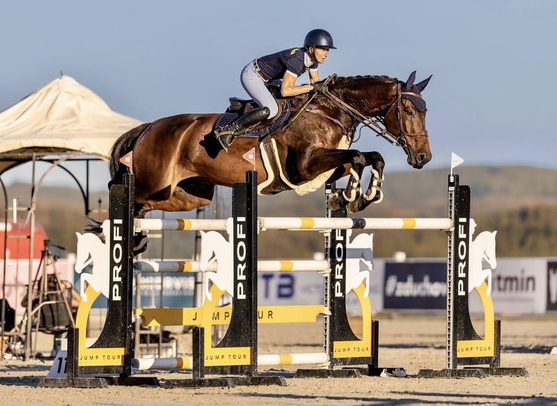 Ich biete einen 7-jährigen Wallach von Kannan, aus einer Stute von Colander/Contender. Dieses Pferd wurde von uns seit der Geburt aufgezogen und wurde von einer Frau geritten. Sein aktuelles Niveau liegt bei 135/140 cm in Wettbewerben. Es ist ein großes und kräftiges Pferd, das großes Potenzial für höhere Klassen zeigt. Er hat eine hervorragende Sprungfähigkeit und macht immer noch fehlerfreie Runden (sehr vorsichtig). Es ist ein siegreiches Pferd, dank seines raumgreifenden Galopps und der einfachen Wendigkeit, leicht zu reiten. Im Finale der sechsjährigen Pferde bei der tschechischen Nachwuchsmeisterschaft belegte er den 3. Platz und weitere Platzierungen auf 130/135 Niveau. Er hat einen perfekten Charakter und kann von Kindern gehandhabt werden, beim Transport, Putzen usw. Er ist vollkommen gesund und hat klare Röntgenbilder. Für weitere Informationen oder um einen Besichtigungstermin zu vereinbaren, kontaktieren Sie mich bitte.