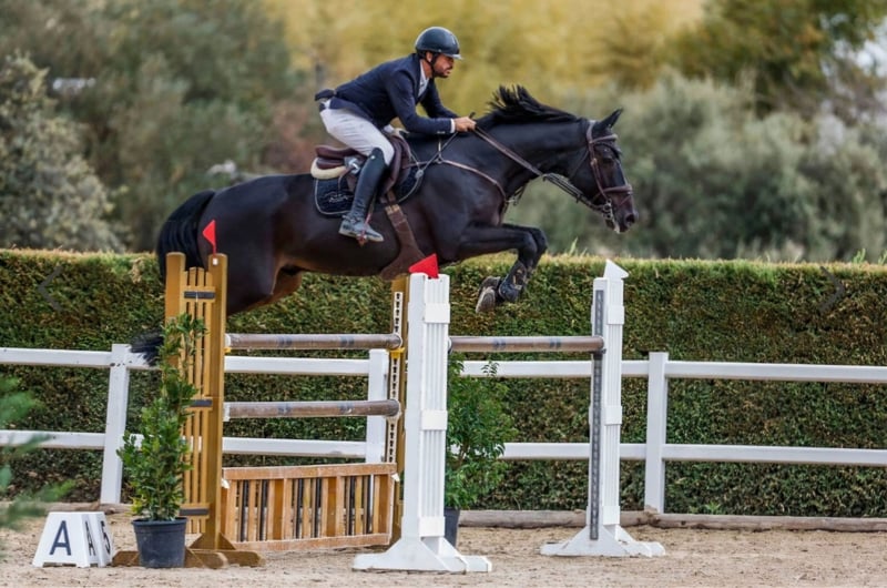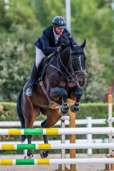 Vangelis is a beautiful black horse that stands out with his presence, sired by Vagabond de la pomme (CSIO 1.60) He is a very well behaved, calm and nice horse under any circumstances. Super comfortable to ride gives the rider a great feeling on the saddle. Well trained on the flat, and super easy while jumping. He has LOTS of scope and forgives all riders mistakes as it is not an issue for him. Perfect for an amateur to progress to higher classes with confindence. Or for someone who wants to jump without any worries at any height you desire. He is currently competing and doing extremely well at 135 courses, ready to step up to 140 which he has already done in training shows. Vangelis is a true gift to work with and a rare find Healthy & no pyro Available for Trials ❤️🐎 Transport can be arranged🌍 What'sapp for further information 😊