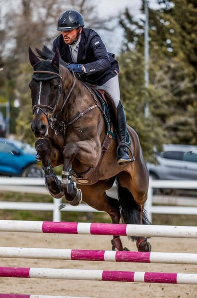 Vangelis to piękny czarny koń, który wyróżnia się swoim wyglądem, ojciec Vagabond de la Pomme (CSIO 1,60). Jest bardzo dobrze wychowany, spokojny i miły w każdym towarzystwie. Podczas jazdy zapewnia ogromny komfort, dając jeźdźcowi świetne odczucia na siodle. Dobrze wytrenowany w ujeżdżeniu i bardzo łatwy podczas skoków. Posiada duży zakres skokowy i wybacza błędy jeźdźca, co nie stanowi dla niego problemu. Idealny dla amatora, który chce rozwijać się na wyższe klasy z pewnością siebie. Lub dla kogoś, kto chce skakać bez obaw na dowolnej wysokości. Obecnie startuje i osiąga świetne wyniki na konkursach 135 cm, jest gotowy na podniesienie do 140 cm, co już pokazał na pokazach treningowych. Vangelis to prawdziwy skarb do pracy i rzadki okaz. Zdrowy i bez pyro. Dostępny na jazdy próbne ❤️🐎 Transport można zorganizować 🌍 WhatsApp dla dalszych informacji 😊