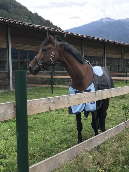 Flash Rouge has been in my possession for three years; prior to that, I acquired him directly from the breeder. At that time, I was looking for a way to return to show jumping after a long break – however, I was initially very anxious. With Flash, I regained my confidence, and we were able to successfully participate in several competitions together. He was always absolutely reliable there. Flash is an extremely people-oriented horse that enjoys the closeness and attention of his person very much – whether while working or simply cuddling together. Although he is a stallion, he shows very little stallion behavior: he can easily be led next to a mare or stand together in the trailer. The only stallion behavior he exhibits is that he likes to nibble on the lead rope. ;) Unfortunately, he injured himself in September of last year and had to take a break for about six months. Under professional supervision in rehabilitation, he was gently and carefully brought back into work. For the past two months, he has been fully cleared for normal riding again – Flash is being ridden regularly, enjoys pasture time, and is fit. However, I do not see him solely in show jumping; rather, I wish for him to have a home where he can be used in various ways and, above all, appreciated. Flash is pleasant to ride, reliable, and not spooky. A good home is my top priority – therefore, it is: placement before price! Currently, Flash is located in Sterzing, Italy.