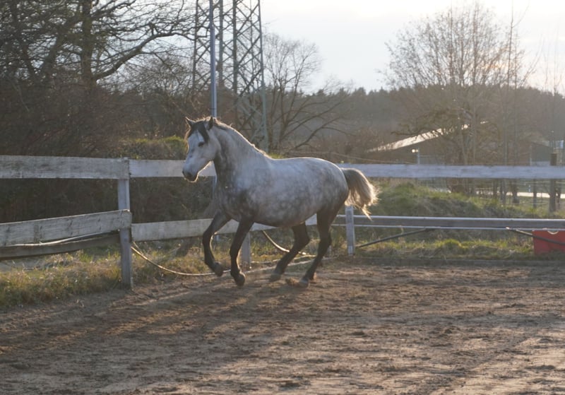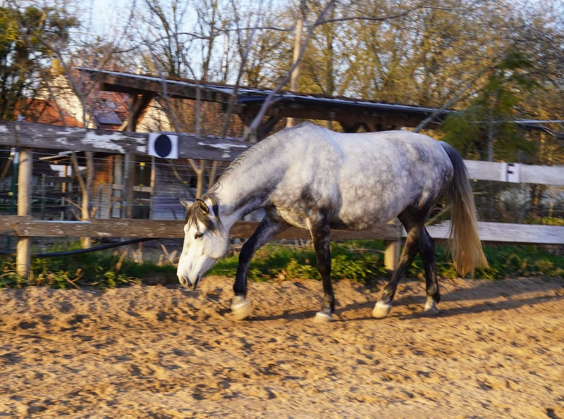 Lotte ist eine sehr liebe, verschmuste und menschenbezogene Stute. Sie zeigt sich lernfreudig und motiviert bei der Arbeit. Im täglichen Umgang ist sie brav - sowohl beim Putzen als auch beim Schmied (Barhuf) und Verladen. Auch an der Longe arbeitet sie zuverlässig. Sie verfügt über eine kleine Grundausbildung mit allen drei Grundgangarten und kennt auch kleine Hindernisse. Besonders hervorzuheben ist ihre tolle Mitarbeit bei der Boden- und Handarbeit. Hier beherrscht sie bereits alle Seitengänge im Schritt und teilweise auch im Trab, ist dabei superleicht in der Hand und reagiert sehr schön auf die Hilfen. Lotte wurde regelmäßig entwurmt und geimpft (Tetanus) und hatte regelmäßige Zahnbehandlungen. In unserem Besitz war sie stets gesund. Sie hat feste, robuste Hufe und ist auch auf festem Untergrund (z.B. Schotter) nicht empfindlich Aktuell steht sie in Boxenhaltung mit täglichem Paddock- oder Weidegang. Ein Offenstallplatz ist grundsätzlich vorstellbar, wobei sie eher rangniedrig ist. Als Lotte vor drei Jahren für unseren Reitverein gekauft wurde, hatte sie schon einen Beckenschiefstand mitgebracht. Dieser hat durch Fehlbelastungen (unausbalancierte Reitschüler, Ausbinder, Sattel, usw.) auch zu leicht gestauchten Wirbeln in der Lende geführt (siehe Fotos) und Lotte hat begonnen sich ab und an ihrer Reitschüler zu entledigen. Sowohl der Beckenschiefstand, als auch die Lendenwirbel sind vermutlich behandelbar und gerade Handarbeit in den Seitengängen ist, neben physio-/osteo-/chiropraktischer Behandlung, hierbei sehr hilfreich für Lotte. Wir können dies als Verein weder zeitlich noch finanziell leisten und müssen uns daher von Lotte trennen, da wir ihr hier nicht mehr gerecht werden können. Aufgrund ihres aktuellen Zustandes möchten wir sie offiziell als Beisteller bzw. nicht reitbar verkaufen. Uns liegt sehr viel an einem liebevollen und fachkundigen Zuhause, in dem auf ihre Bedürfnisse eingegangen wird - daher wird sie weit unter Wert abgegeben. Bei Interesse freuen wir uns über eine kurze Vorstellung deiner Person sowie Informationen zur künftigen Haltung. Weitere Details geben wir gerne auch telefonisch.