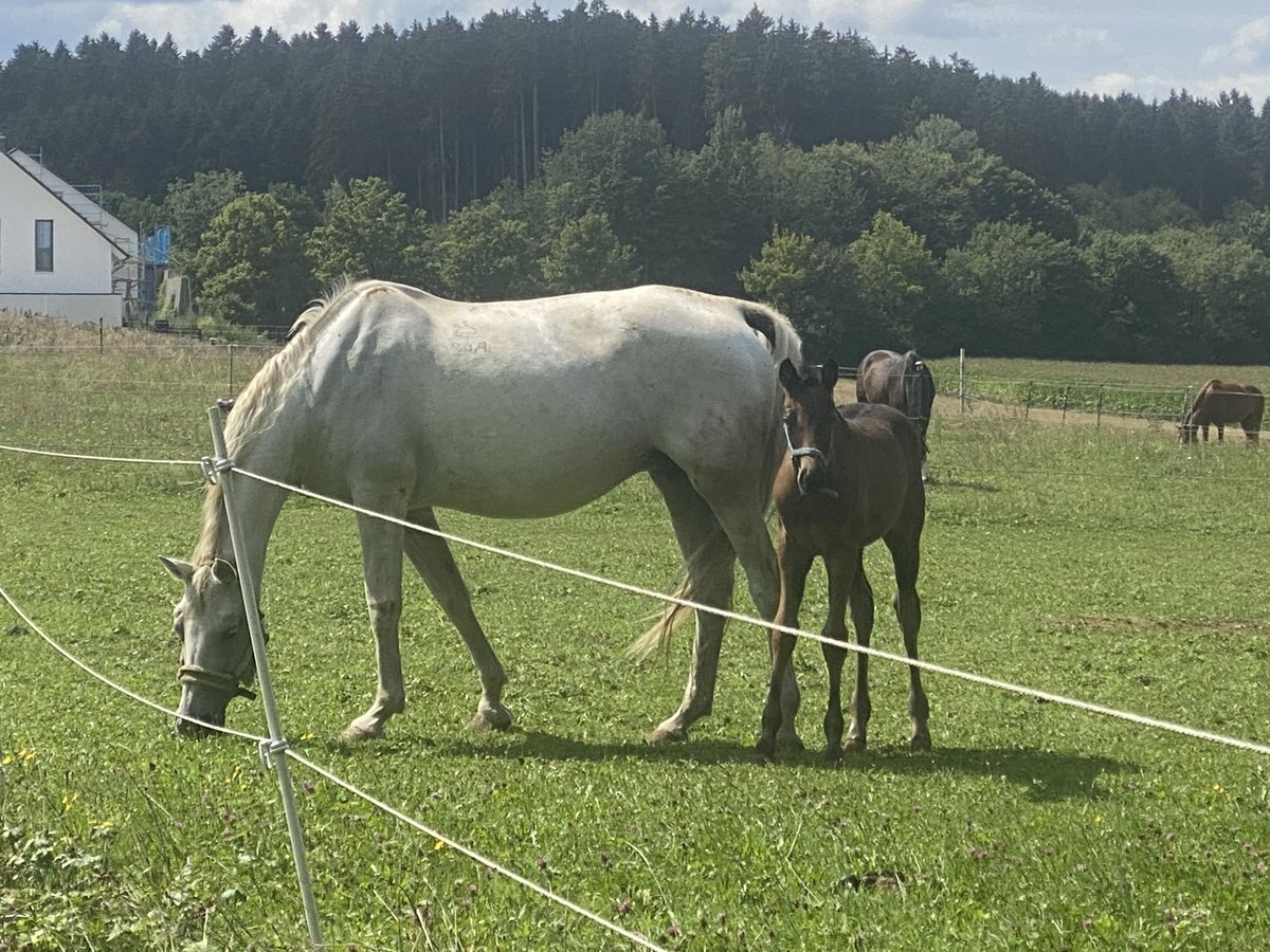Kozima ist eine superbrave Zuchtstute mit tollem Charakter, und top Interieur, guten GGA und für die VS und Springpferdezucht interessant. Sie hatte bereits zwei Fohlen. Kozima ist regelmäßig entwurmt und geimpft und nur in beste Hände zur Zucht abgegeben. Genannter Preis bezieht sich nur auf die Zuchtstute. Das Fohlen auf den Bildern ist ebenfalls gegen Gebot verkäuflich: Stutfohle, Juni 2025 geboren von C‘est Ça/ Comme il faut. Es wurde im Dezember abgesetzt, ist halfterführig, entwurmt, geimpft und kennt Schmied und TA. Beide Pferde können im Raum VS angeschaut werden. Bei Interesse jeweils PN A.Herzog