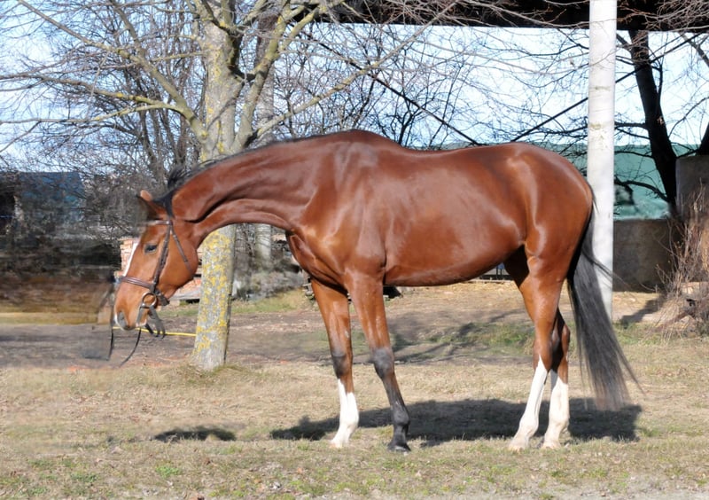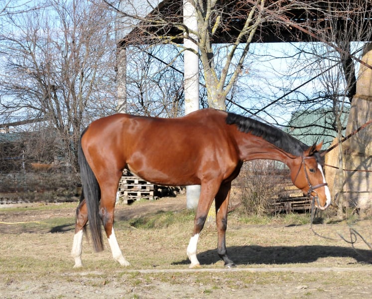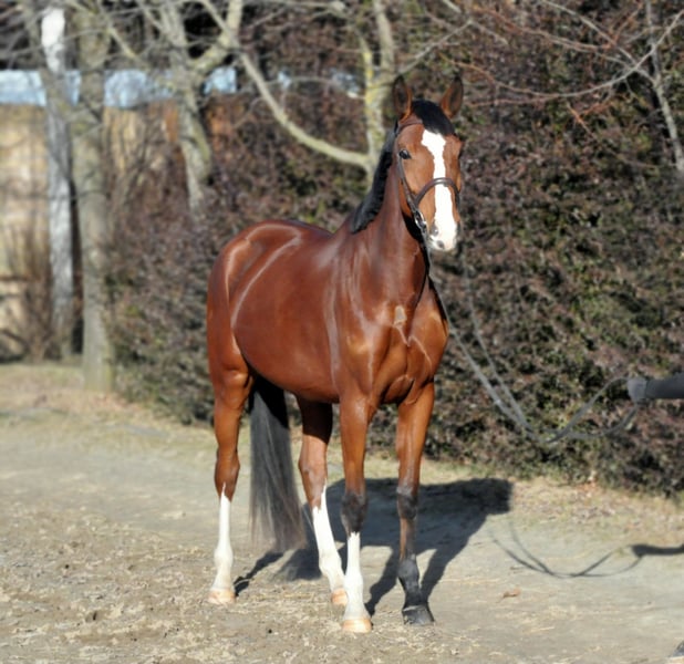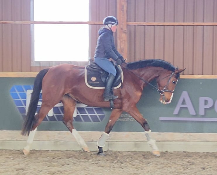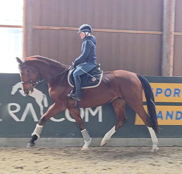 Eye-Catcher! Currently, this wonderful mare is in training with us and has been ridden at a solid riding horse level. She has already completed her first jumps under saddle. She is straightforward, easy to ride, motivated, and equipped with a pleasant go. She works well both on the arena and in the indoor riding hall and is familiar with group trail riding – an excellent foundation for further development! She is very well-behaved in handling, not temperamental, and has no bad habits. Up-to-date, good-quality X-rays are available. She is healthy, herd-friendly, and accustomed to both box and open stall living. She is farrier- and loading-friendly. Directly from the breeder! A test ride is possible by appointment after a phone call. Further information gladly by phone or
