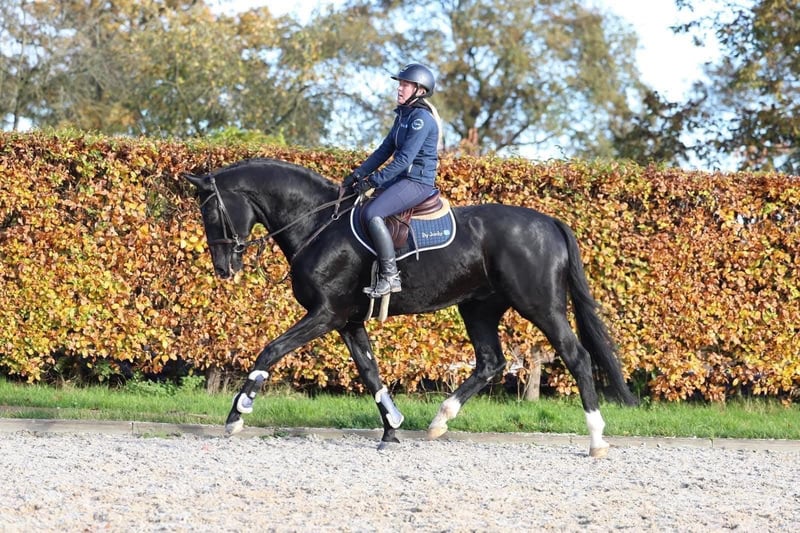 For sale is an impressive dark bay gelding, born in 2015. Standing at 17.4 hh, he combines strength, elegance, and agility. Zeus is very cooperative, easy to ride, and supports the rider in every situation. He is very attentive and reliable. Especially suitable for nervous riders or those returning to riding. Zeus provides an excellent riding experience with his elastic trot and a lovely, rounded upward canter. He has a strong character and a charismatic presence, and is extremely friendly in handling. He has a solid basic training up to class L and M, and has been ridden in competition. Perfect for ambitious beginners as well as experienced dressage riders seeking a dependable partner. The current veterinary examination (AKU) shows no findings. Zeus is currently in training, and prices may be adjusted depending on progress. Please feel free to contact me for more information or if you are interested. Videos available upon request. Viewings and test rides by appointment.
