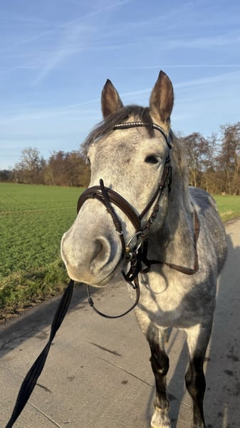 Verkaufsanzeige Mischlingswallach Silver** Zum Verkauf steht mein Mischlingswallach Silver mit einem Stockmaß von ca. 150 cm. Silver ist roh und noch nicht eingeritten, daher eignet er sich für erfahrene Pferdemenschen, die Freude an der weiteren Ausbildung haben. Silver ist ein sensibles und ehrliches Pferd, das etwas Zeit braucht, um Vertrauen zu fassen. Hat man jedoch sein Herz gewonnen, zeigt er sich sehr verschmust und anhänglich. Im Umgang ist er ruhig, aufmerksam und neugierig. Halfter und Führen kennt er, ebenso den Alltag im Stall und auf der Weide. Silver bringt viel Potenzial als zukünftiges Freizeitpferd mit und sucht einen Menschen mit Geduld, Ruhe und Herz. Weitere Informationen, Bilder oder ein Kennenlernen gerne auf Anfrage.