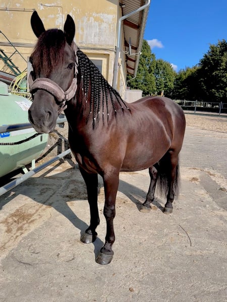 Grofo wordt in maart 10 jaar en komt oorspronkelijk uit Hongarije. We hebben hem in augustus 2021 in Oostenrijk gekocht en daarna opgeleid. Reiterisch was hij op LK3-niveau, beheerst galopwissels, schouderbinnen en was altijd fijn en aangenaam om te rijden. Ook ritten in het terrein vond hij erg leuk – soms wat onzeker in het terrein, maar onder rustige leiding altijd braaf. Naast zijn geweldige karakter valt Grofo ook op door zijn uitzonderlijk mooie verschijning – een echt indrukwekkend, expressief paard dat meteen in het oog springt. ❗ Belangrijk: Grofo wordt uitsluitend als niet-berijdbaar maatje aangeboden. Vanwege een gediagnosticeerde artrose in de halswervelkolom (C6/C7) struikelt hij tijdens het leiden en rijden. Rijden is daardoor niet meer verantwoord en levensgevaarlijk. Voor de rest brengt hij qua gezondheid het volgende mee: - Operatie van het suspensieband achter links in juni 2024 (goed verlopen) - Heroperatie in juni 2025 aan het linker achterbeen vanwege kraakbeenafbraak in het spronggewricht, inclusief stamceltransplantatie - Na een langere revalidatie weer getraind en momenteel klachtenvrij op dat been In ons bezit heeft hij nooit problemen gehad met koliek, hoesten, oogontstekingen of hoefkatrolontsteking. Hij werd regelmatig gevaccineerd en ontwormd. Zijn tanden zijn vorig jaar nog gedaan. Hij loopt op hoefbeslagvrij en draagt in het terrein hoefschuiven, maar dat is niet per se nodig. Grofo is een zeer slimme, oplettende en leergierige pony die nieuwe dingen snel begrijpt en graag meewerkt – vooral als je eerlijk en rustig met hem omgaat. Hij kent al enkele kunstjes, wat zijn motivatie tot samenwerking en zijn plezier in mentale uitdaging mooi onderstreept. In de omgang vanaf de grond is hij momenteel geen beginnerspaard. Bij angst of lusteloosheid neigt hij zich los te rukken – hier moet je alert zijn en vooruitdenken. Hij loopt nooit ver weg, maar blijft enkele meters verder staan. Longeren vindt hij niet zo leuk, hij kent de dubbele longe, maar vrijheidsdressuur vindt hij wel leuk. Wandelen gaat soms beter dan andere keren, ook hier is consequentie en ervaring belangrijk. We zijn ervan overtuigd dat deze problemen met consequent, geduldig en professioneel trainen sterk kunnen verbeteren, omdat Grofo zeer intelligent is en graag leert. In de kudde is hij zeer sociaal en rangmiddig, makkelijk en goed in de omgang. Hij is in Hongarije opgegroeid in een grote kudde. Bij ons heeft hij zowel bij hengsten als bij merries gestaan. Als hij kon, zou hij een enorm groot vriendenboek hebben. Mensgericht is Grofo een absolute schat: heel open, knuffelig en aanhankelijk. Hij bouwt een sterke band op en heeft een vaste persoon nodig die hem veiligheid biedt en hem met rust, duidelijkheid en tijd benadert. We wensen uitdrukkelijk een plek waar wordt gerespecteerd en rekening gehouden met het feit dat Grofo nooit (!) meer bereden mag worden. Het is simpelweg te gevaarlijk. Een thuis met paardengezelschap, hartsmensen en zonder prestatiedruk – waar hij gewoon paard kan zijn. Bij vragen neem gerust contact op. Hij wordt niet aan handelaren verkocht. Plaats gaat voor prijs.