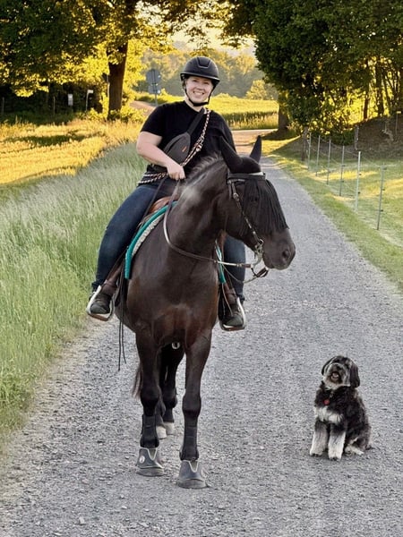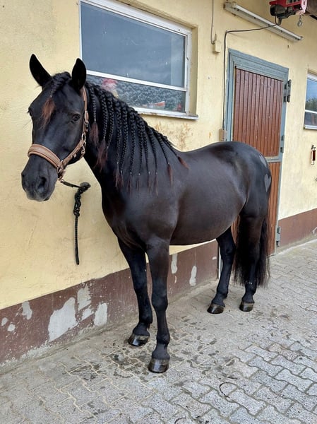Grofo wird im März 10 Jahre alt und stammt ursprünglich aus Ungarn. Wir haben ihn im August 2021 in Österreich gekauft und anschließend ausgebildet. Reiterlich war er auf LK3-Niveau, beherrscht Galoppwechsel, Schenkelweichen und war stets fein und angenehm zu reiten. Auch Ausritte mochte er sehr gern – im Gelände zwar manchmal unsicher, aber mit ruhiger Führung stets brav. Neben seinem tollen Charakter besticht Grofo auch durch sein außergewöhnlich schönes Erscheinungsbild – ein wirklich beeindruckendes, ausdrucksstarkes Pferd, das sofort ins Auge fällt. ❗ Wichtig: Grofo wird ausschließlich als nicht reitbarer Beisteller abgegeben. Aufgrund einer diagnostizierten Arthrose in der Halswirbelsäule (C6/C7) stolpert er beim Führen und Reiten. Das Reiten ist dadurch nicht mehr vertretbar und lebensgefährlich. Gesundheitlich bringt er ansonsten Folgendes mit: - Fesselringband-OP hinten links im Juni 2024 (gut verlaufen) - Erneute OP im Juni 2025 am linken Hinterbein aufgrund von Knorpelauflösung im Fesselgelenk inkl. Stammzelltransplantation - Nach längerer Reha inzwischen wieder auftrainiert und aktuell beschwerdefrei auf diesem Bein In unserem Besitz hatte er nie Probleme mit Kolik, Husten, Augenentzündungen oder Rehe. Er wurde regelmäßig geimpft und entwurmt. Die Zähne wurden erst im vergangenen Jahr gemacht. Er läuft Barhuf und trägt im Gelände Hufschuhe, brauch diese aber nicht zwingend. Grofo ist ein sehr schlaues, aufmerksames und lernbereites Pferd, das neue Dinge schnell versteht und gerne mitarbeitet – besonders, wenn man fair und ruhig mit ihm umgeht. Er kennt zudem bereits einige Kunststücke, was seine Motivation zur Zusammenarbeit und seine Freude an mentaler Beschäftigung schön unterstreicht. Im Umgang vom Boden ist er aktuell kein Anfängerpferd. Bei Angst oder Unlust neigt er dazu, sich loszureißen – hier muss man aufmerksam sein und vorausschauend handeln. Er läuft aber nie weit weg sondern bleibt wenige Meter später stehen. Longieren mag er nicht besonders, Doppellonge kennt er, Freiarbeit hingegen macht ihm Freude. Spazierengehen klappt mal besser, mal schlechter, auch hier ist Konsequenz und Erfahrung wichtig. Wir sind jedoch überzeugt, dass sich diese Thematik mit konsequentem, geduldigem und professionellem Training deutlich verbessern lässt, da Grofo sehr intelligent ist und gerne lernt. In der Herde ist er sehr sozial und rangmittig, unkompliziert und verträglich. Er ist in Ungarn in einer großen Herde aufgewachsen. Er stand bei uns mit Wallachen als auch mit Stuten zusammen. Wenn er könnte, hätte er ein riesengroßes Freundebuch. Menschen gegenüber ist Grofo ein absoluter Schatz: sehr aufgeschlossen, verschmust und anhänglich. Er baut eine enge Bindung auf und braucht eine feste Bezugsperson, die ihm Sicherheit gibt und ihm mit Ruhe, Klarheit und Zeit begegnet. Wir wünschen uns ausdrücklich einen Endplatz, an dem respektiert und berücksichtigt wird, dass Grofo nie wieder (!!) geritten werden darf. Es ist einfach zu gefährlich. Ein Zuhause mit Pferdegesellschaft, Herzmenschen und ohne Leistungsdruck – in dem er einfach Pferd sein darf. Bei Fragen gerne melden. Er wird nicht an Händler abgegeben. Es gilt definitiv Platz vor Preis.