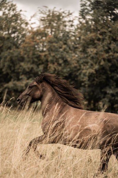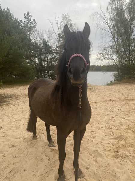 Salem ist ein ca 1,38 cm großer Huzulen- Wallach aus Polen (Hroby- Linie). Er ist äußerst neugierig, allerdings auch in seinem Charakter noch unsicher. Dies versucht er durch viel Distanzunterschreitung / Körperkontakt zu kompensieren. An der Hand oder beim Spaziergang reguliert er viel über das Maul und kann auch beißen. Dies ist vor allem im Umgang mit unerfahrenen Personen oder Kindern äußerst wichtig, da er vorher schon Signale sendet, die nicht übersehen werden sollten. Auch beim Körperkontakt / Kuscheln gibt es diese Momente. Ich führe dieses Verhalten auf Überforderung zurück, da er dazu ein bisschen einlädt: Viele andere Situationen meistert er absolut souverän (Verladen, einparken zum Aufsteigen, verschiedene Übungen an der Hand, Tierarzt…), so dass er schon ab und an überschätzt wird: Salem ist in der Tat noch sehr jung und darf das auch sein. Kein Baby, aber definitiv ein Kleinkind. ;) Bei uns steht er mit einer älteren Stute und einem rangniedrigen Wallach. Ich wünsche mir für ihn eine größere Herde mit gleichaltrigen Artgenossen, um nachzureifen und in der Kommunikation sicherer zu werden - nicht um schneller zuzuschnappen, sondern die Signale anderer in allen Facetten wahrzunehmen und sich auszuprobieren. Der Mensch dazu muss sicher in Pferde- Körpersprache lesen und ‚sprechen‘ sein. Wissen was er möchte, und wo die Grenzen sind, diese klar und fair kommunizieren können. Wobei ich mir, wie oben schon gesagt, eher eine Zeit zum Nachreifen wünsche, bevor es an die Arbeit geht. Salem wurde seit September letzten Jahres bei uns gearbeitet und auch schonend geritten. Er ist ein überaus kluges Pony und bei fairer, klarer Behandlung sehr motiviert. Er lernt ziemlich schnell - in vielerlei Hinsicht. auch Unsinn, wenn man ihn lässt). Für mich ist er ein absolut charmanter Kerl mit sehr klaren Wünschen an seinen Menschen: Klarheit, Fairness und Humor. Er wurde mit durch unsere Osteopathin behandelt, hat gerade frisch Zähne gemacht bekommen und wurde natürlich regelmäßig geimpft und entwurmt. Eine kleine AKU ohne Beanstandungen aus 2024 liegt vor. Einem ausgiebigen Kennenlernen steht nichts im Wege- ich wünsche mir für Salem ein tolles Zuhause mit Herz, Zeit und langfristiger Perspektive.
