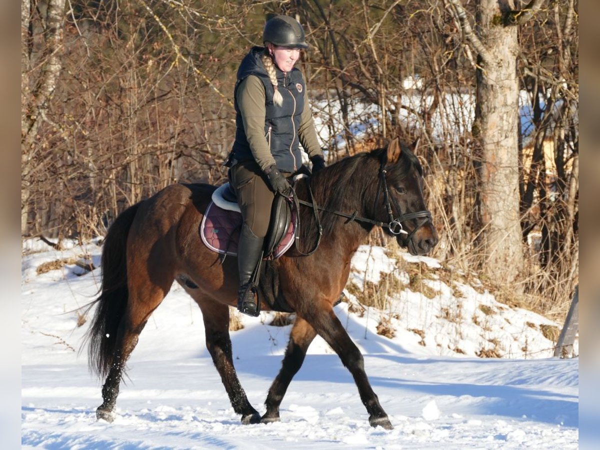 Huzule Wallach 5j. Dunkelbraunfalbe Stm. 143cm. rahmiger, kompakter, hübscher Typ mit guten GGA und viel Ausstrahlung; geritten und gefahren; sicher im Gelände, er besticht durch seine Selbständigkeit und seinen Mut bei der Arbeit; gehorsam im Umgang, - Ein zukunftspferd, der auf der Suche nach seinen Bezugspersonen ist!, schmiede u verladefromm, für Offenstall geeignet, in der Herde verträglich