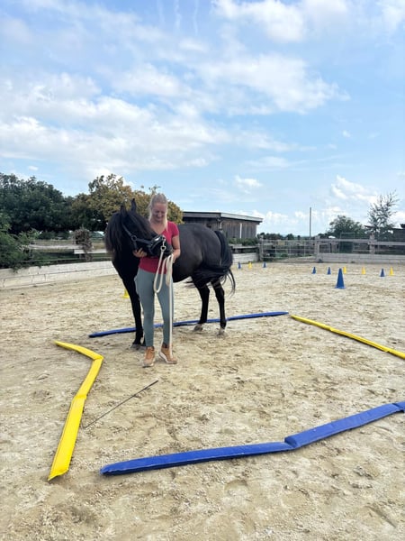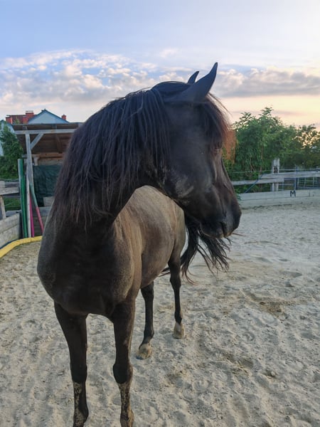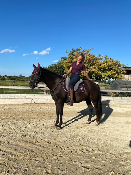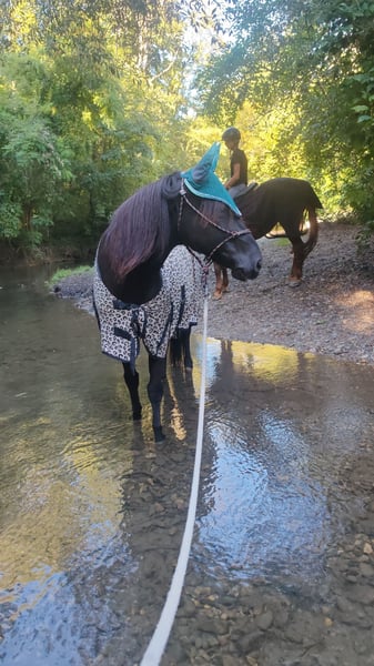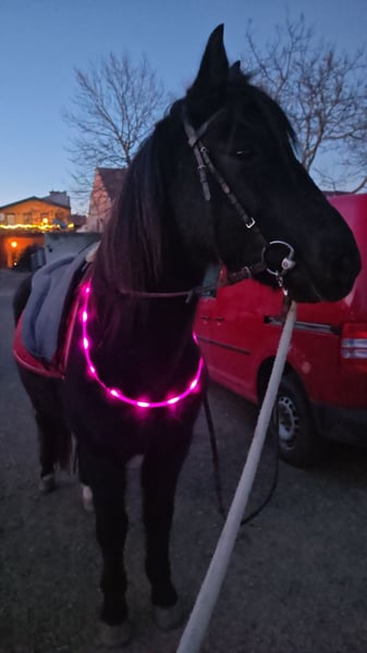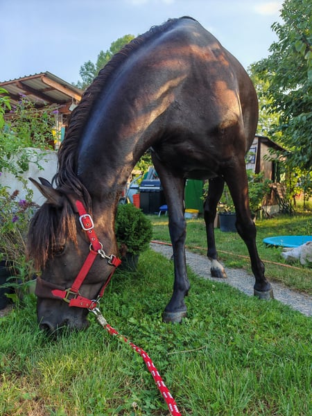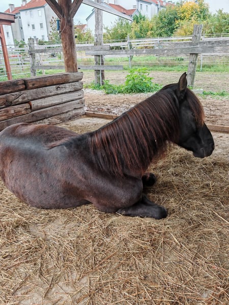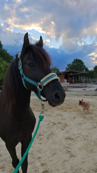 Asterix ist der perfekte Begleiter für jemanden der hauptsächlich ins Gelände gehen will und die Natur genießen möchte. Er ist dort absolut unerschrocken, liebt Wasser und ist motiviert. Bei uns kommt er Barhuf gut zurecht und soweit wir wissen hatte er auch noch nie Eisen. Am Viereck/Halle blockiert er leider komplett, da möchte er nicht arbeiten. Laufen lassen und ein klein wenig Bodenarbeit, habe ich mit ihm aber schon erarbeiten können und ich denke das der passende Mensch da auch sicher noch etwas mehr rausholen kann. Jedoch sollte das Hauptaugenmerk auf Ausritten liegen. Asterix lebt im Offenstall in gemischter Herde. Hier ist er eher Ranghoch und bevorzugt eher mehr als wenige Pferde. Leider Koppt er, daß haben wir bisher nicht verändern können. Außerdem ist er im Umgang ein kleiner Grantler, weswegen er bei mir den liebevollen Spitznamen Grantelbart hat😅 Dazu bei Interesse gerne mehr. Auch wenn bei mir im Gelände auch mal die Kids drauf sitzen, gebe ich ihn nicht als Kinder/Anfänger Pferd ab, aufgrund seiner Art im Umgang. Beim Putzen, Hufschmied, Waschen, Sattel etc ist er super brav. Ich verkaufe ihn nur weil ich bereits 5 Pferde habe und er derjenige ist der bei mir zu kurz kommt, worunter er leidet. Er will seine feste bezugsperson haben und regelmäßig raus gehen.