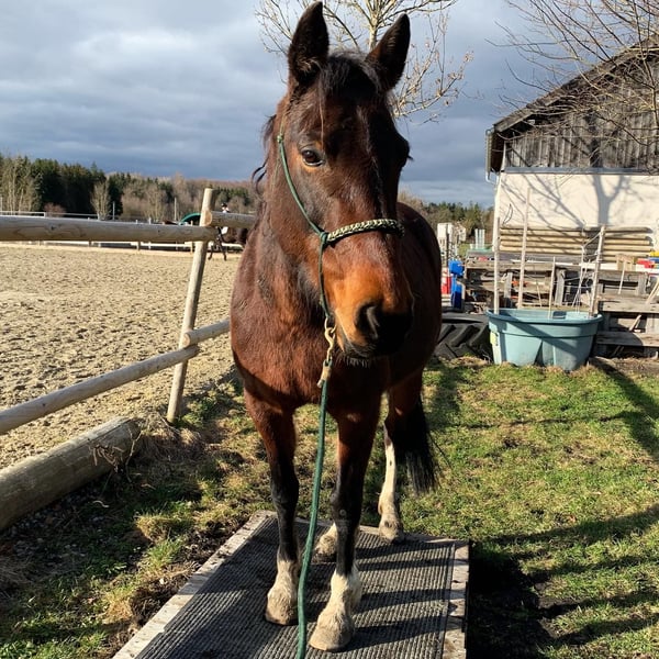 ZUR VERFÜGUNG, nicht zum Verkauf Wunderschöne und super tolle Stute sucht ein neues Zuhause. Meine Stute Josy, 15 Jahre alt, 150cm Stockmaß, sucht ein neues Zuhause mit neuem Wirkungskreis, in dem sie von ganzem Herzen geliebt wird und weiterhin ihrem Ausbildungsstand entsprechend gefördert wird. Josy ist eine total liebe Kleinpferd-Stute, die jedem gefallen möchte. Da sie ein irisches Halbblut ist und dementsprechend auch Vollblutanteile hat, hat sie ein entsprechendes Go und Tempo, ist dabei aber zu jeder Zeit, egal ob mit oder ohne Gebiss, super händelbar und wird auch nie kopflos oder so. Ihre Große Leidenschaft ist das Ausreiten, aber auch Bodenarbeit, Handarbeit, Spazieren, Longieren, Dressur oder ab und zu mal über ein Hindernis hüpfen macht ihr große Freude. Auch ganz junge und kleine Kinder durften auf ihrem Rücken schon Platz nehmen und dabei agiert sie mit größter Vorsicht, um ihrem kleinen Freund auf ihrem Rücken ja nicht zu schaden. Sie wäre daher bestimmt auch ein super Familienpony. Da ich sie mit einer Trageerschöpfung übernommen habe und sie die Jahre zuvor auch fast ausschließlich im Gelände geritten wurde, ist sie in der Dressur noch eher am Anfang und bedarf noch einer fördernden Hand. Ihr macht es aber großen Spaß und wenn man mit einer ruhigen Art mit ihr arbeitet lernt sie super schnell dazu. Wir haben auch schon mehrere Tages- und Wanderritte mit ihr gemacht und das macht ihr am aller meisten Spaß. Sie geht sowohl alleine als auch mit anderen Pferden in der Gruppe an jeder Position ins Gelände und meistert Autos, Traktoren, LKW´s, Brücken, Tunnel, Unterführungen, Städte, Dörfer, Gewässer, andere Tiere und Co mit Bravour und ist dabei total unerschrocken. Sie kennt auch das Ausreiten mit Handpferd sowie das mitlaufen als Handpferd bei einem anderen Pferd. Da Josy total brav in den Hänger geht und auch grundsätzlich eher unerschrocken ist, wären kleinere Turniere mit ihr sicher machbar, sie hat bislang allerdings noch keine Turniererfahrung und ich glaube auch nicht, dass sie aufgrund ihres aktuellen Ausbildungsstandes super geeignet wäre für Turniere. Für ihr neues Zuhause ist mir vor allem wichtig, dass sie in einem Offenstall mit anderen Pferden zusammen gehalten wird und nicht in einer Box stehen muss. Zudem ist mir wichtig, dass mit dem Pferd abwechslungsreich gearbeitet wird und es einem nicht nur um Reiten geht, sondern das Pferd als Partner und Freund angesehen wird und nicht als Sportgerät. Sie muss im Winter bzw. bei Regen und/oder Kälte eingedeckt werden, das sie sonst schnell verspannte Muskeln hat. Sonst hat sie keinerlei gesundheitliche Probleme und ist top fit. Aktuell läuft sie Barhuf und kommt damit auch hervorragend klar. Für die Wanderritte hatte sie Hufschuhe drauf, für normale Ausritte oder Tagestouren braucht sie aber nicht die. Da ich sie nicht verkaufen möchte, sondern zunächst einmal zur Verfügung stellen würde, wäre es mir lieb, wenn sie im Umkreis von Bayern bleiben würde. Das ist aber keine Grundvorraussetzung. Wenn alles passt, würde es auch die Möglichkeit zu einer Kaufoption geben. Bei weiteren Fragen gerne jederzeit Melden.