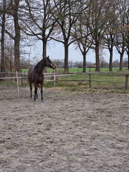 Door tijdsgebrek bied ik mijn 5-jarige Ierse merrie te koop aan. Ze is een lieve en sociale merrie van ongeveer 1.63 m die goed kan opschieten met andere paarden. In de kudde is ze netjes en vriendelijk. Ik zie haar dan ook het liefst op een stal waar ze samen kan staan met andere paarden en voldoende buiten komt. Ik rijd haar voornamelijk dressuurmatig. Ze is werkwillig en pakt het werk goed op. Daarnaast maakt ze ook met plezier een sprongetje. Het is een merrie die graag aan het werk is en van beweging houdt. Wanneer ze een paar dagen niet gereden wordt, kan ze wat frisser zijn. In de zomer, is dit minder. In de omgang is ze lief en mensgericht. Ze is braaf bij de hoefsmid en gaat netjes de trailer op. Gezien haar leeftijd en energie is ze niet geschikt voor beginners. Ze heeft een ruiter nodig die haar verder wil begeleiden en rustig met haar door wil ontwikkelen. Alle keuringen toegestaan, kosten koper. Voor meer informatie of een filmpjes kun je gerust een bericht sturen naar 0641426014