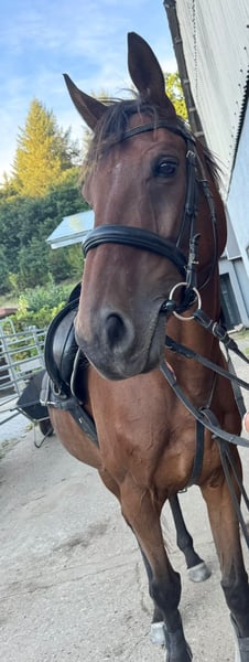 We are looking for a new, loving home for our Bandit. He was intended to become a school horse with us, but he prefers having a consistent handler over constant change. He will turn 10 years old in May, is approximately 16.1 hh, and is very easy to ride. He is experienced in indoor arenas, outdoor riding areas, and on trails. Currently, he is in a mixed herd with geldings and mares. No health issues are known; he is well-behaved with the vet and farrier. Possibly, his tack and equipment can be included in the sale. Further details are available upon personal contact.